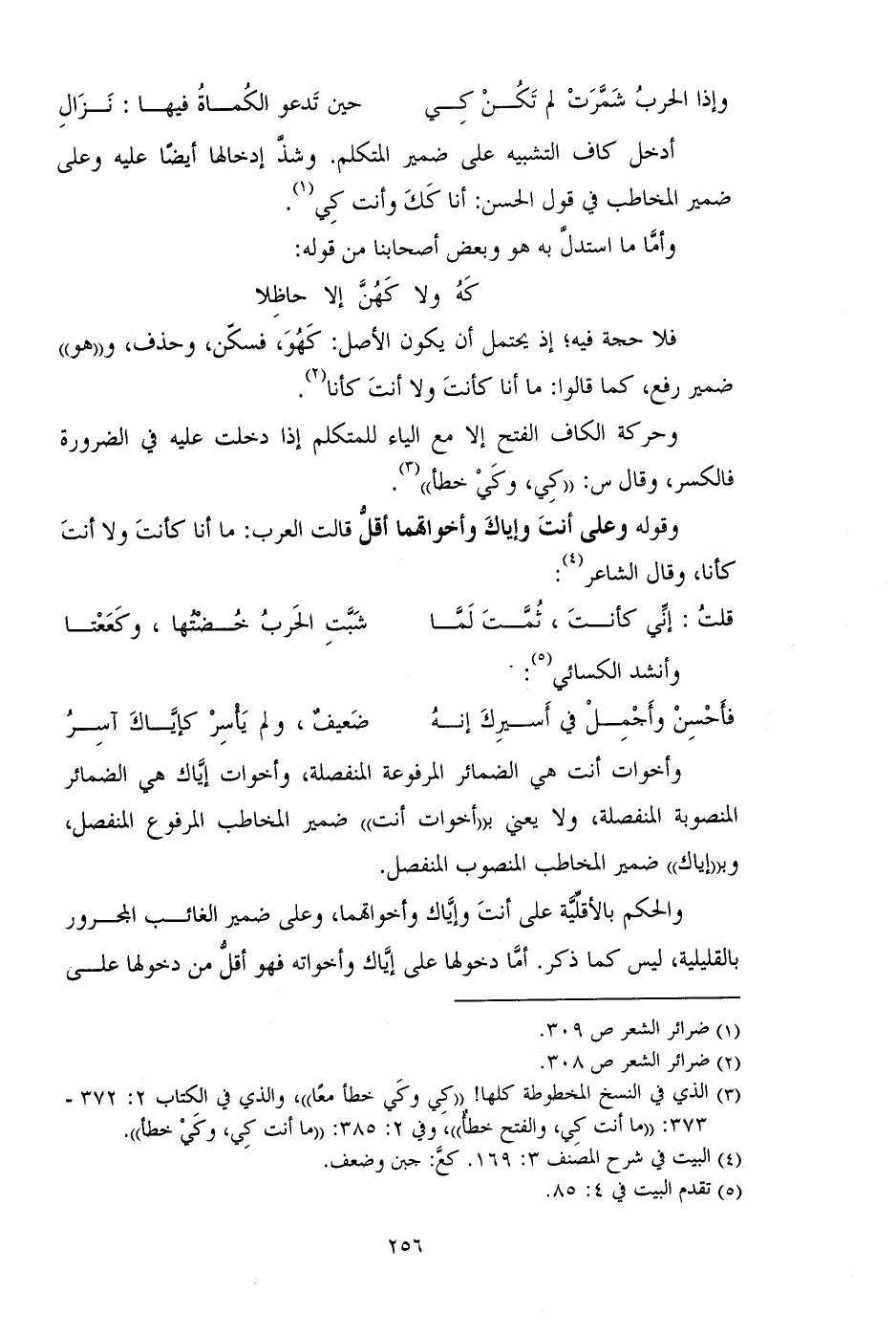 أدخل كاف التشبيه على ضمير المتكلم. وشذ إدخالها أيضا عليه وعلى ضمير المخاطب في قول الحسن: أنا كك وأنت كي.