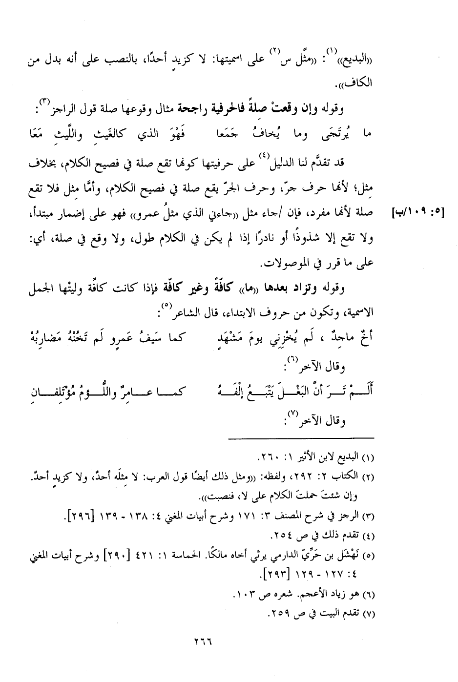 "البديع": "مثل س على اسميتها: كلا كزيد أحدا، بالنصب على أنه بدل من الكاف"