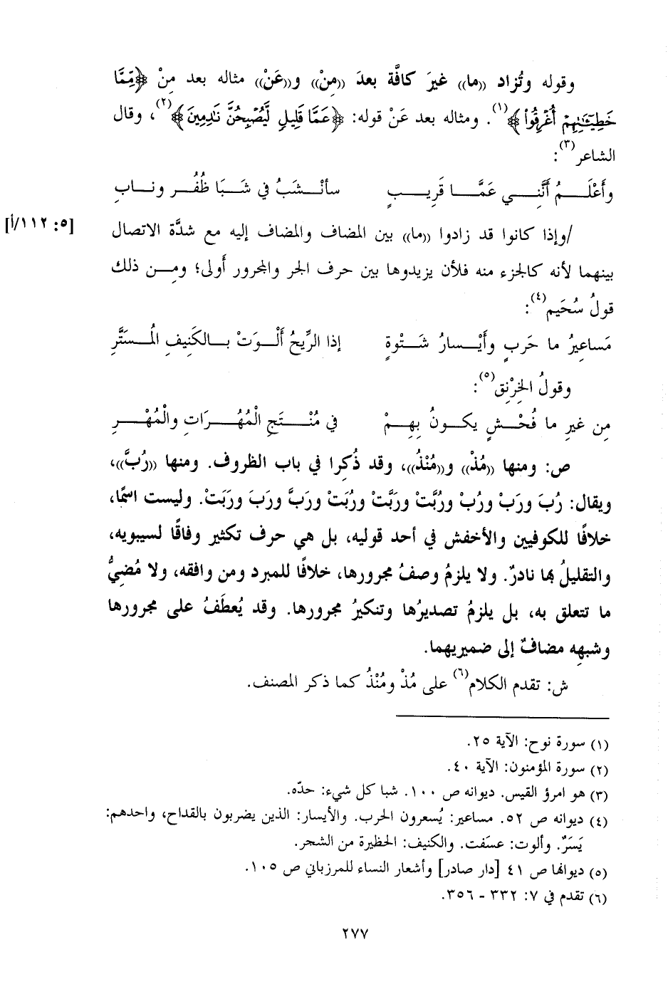 وقوله وتزداد "ما" غير الكافية بعد «من» و «عن» مثاله بعد من {مِمَّا خَطِيئَاتِهِمْ أُغْرِقُوا}. ومثاله بعد عن قوله: {عَمَّا قَلِيلٍ لَيُصْبِحُنَّ نَادِمِينَ}، وقال الشاعر: