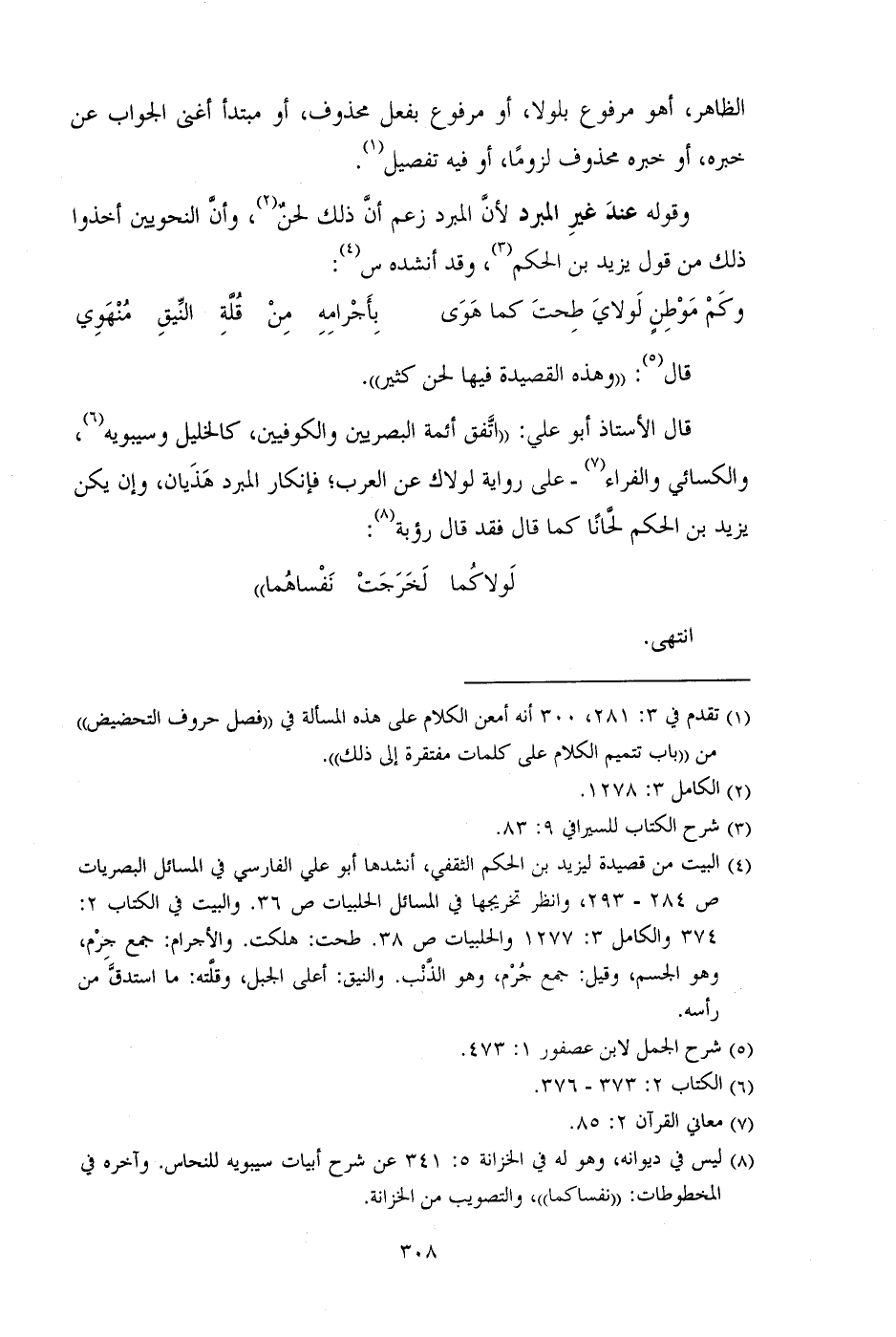 قال الأستاذ أبو علي: "اتفق أئمة البصريين والكوفيين، كالخليل وسيبوبه، والكسائي والفراء- علي رواية لولاك عن العرب؛ فإنكار المبرد هذيان، وإن يكن يزيد بن الحكم لحاناً كما قال فقد قال رؤبه: