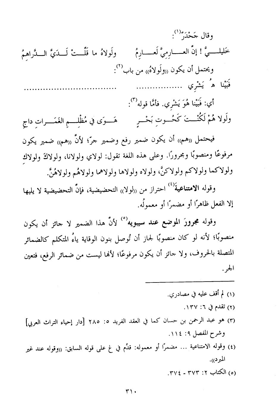 وقوله مجرور الموضع عند سيبويه لأن هذا الضمير لا جائز أن يكون منصوباً؛ لأنه لو كان منصوباً لجاز أن توصل بنون الوقاية ياء المتلكم كالضمائر المتصلة بالحروف، ولا جائز أن يكون مرفوعاً؛ لأنها ليست من ضمائر الرفع، فتعين الجر.