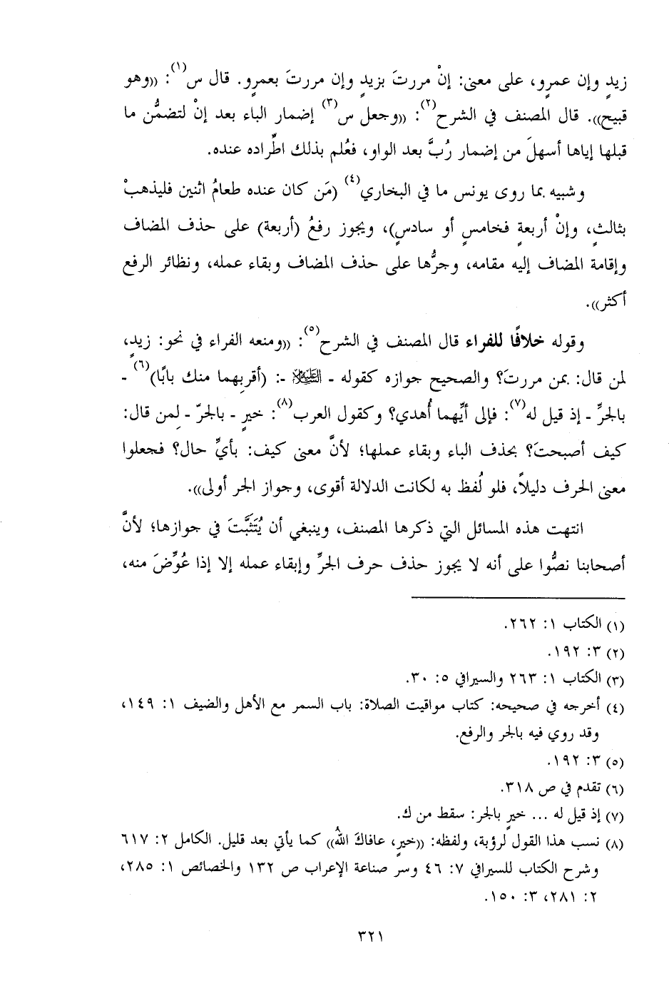 وشبيه بما روى يونس ما في البخاري (من كان عنده طعام اثنين فليذهب بثالث، وإن أربعة فخامس او سادس)، ويجوز رفع (أربعة) على حذف المضاف وإقامة المضاف إليه مقامه، وجرها علي حذف المضاف وإقامة المضاف إليه مقامه، وجرها علي حذف المضاف وبقاء عمله، ونظائر الرفع أكثر".