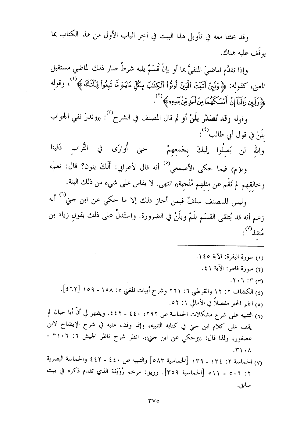 وليس للمتصف سلف فيمن أجاز ذلك إلا ما حكى عن ابن جني أنه زعم أنه قد يتلقى القسم بلم وبلن في الضرورة. واستدل على ذلك بقول زياد بن منفذ.