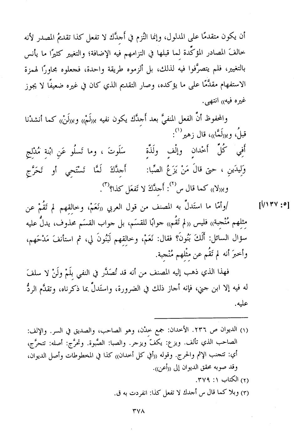 والمحفوظ أن الفعل المنفي بعد أجدك يكون نفيه ب ((لم)) وب ((لن)) كما أنشدنا قبل، وب ((لما))، قال زهير: