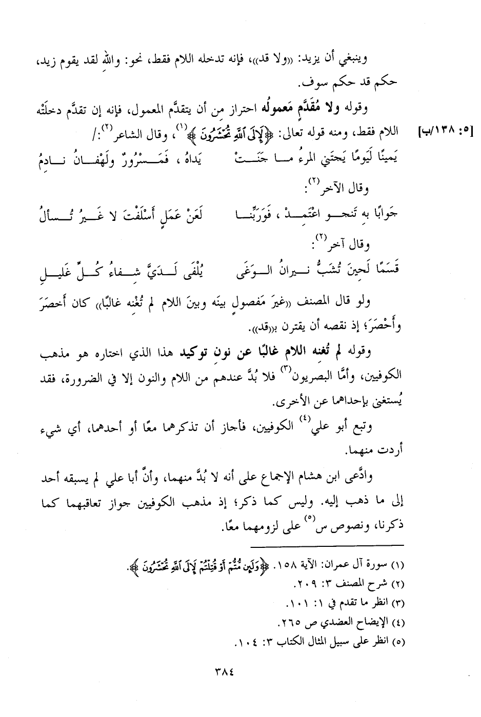 وادعى ابن هشام الإجماع على انه لابد منهما، وأن أبا علي لم يسبقه أحد إلي ما ذهب إليه. وليس كما ذكر؛ إذ مذهب الكوفيين جواز تعاقبهما كما ذكرنا، ونصوص س علي لزومهما معاً.
