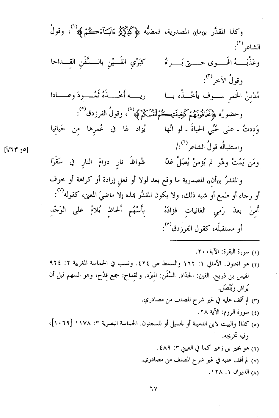 وحضوره (تَخَافُونَهُمْ كَخِيفَتِكُمْ أَنْفُسَكُمْ)، وقول الفرزدق: