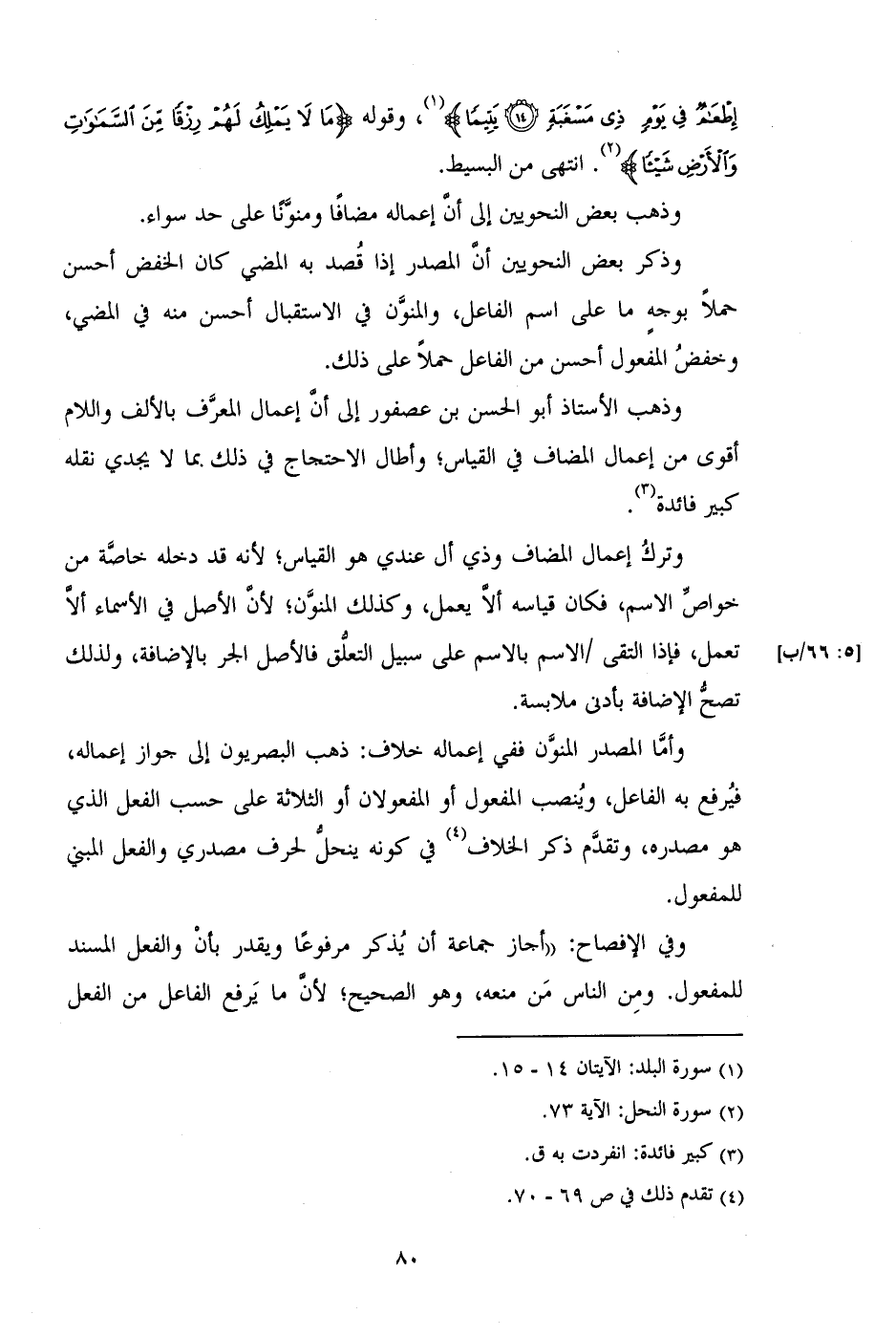 إِطْعَامٌ فِي يَوْمٍ ذِي مَسْغَبَةٍ (١٤) يَتِيمًا)، وقوله (مَا لَا يَمْلِكُ لَهُمْ رِزْقًا مِنَ السَّمَاوَاتِ وَالْأَرْضِ شَيْئًا). انتهى من البسيط.