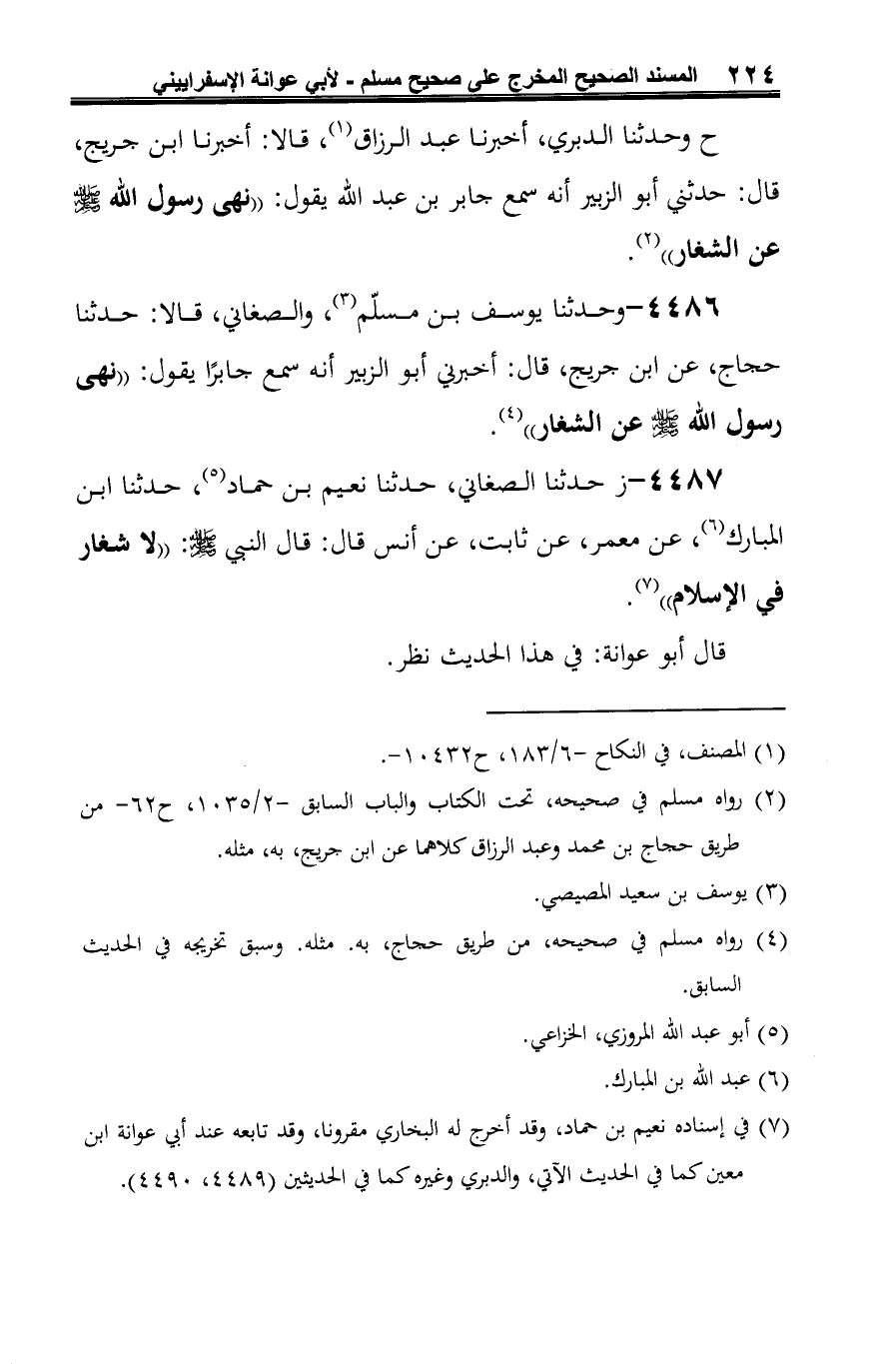 4486 - وحدثنا يوسف بن مسلّم (¬1)، والصغاني، قالا: حدثنا حجاج، عن ابن جريج، قال: أخبرني أبو الزبير أنه سمع جابرًا يقول: "نهى رسول الله -صلى الله عليه وسلم- عن الشغار" (¬2).