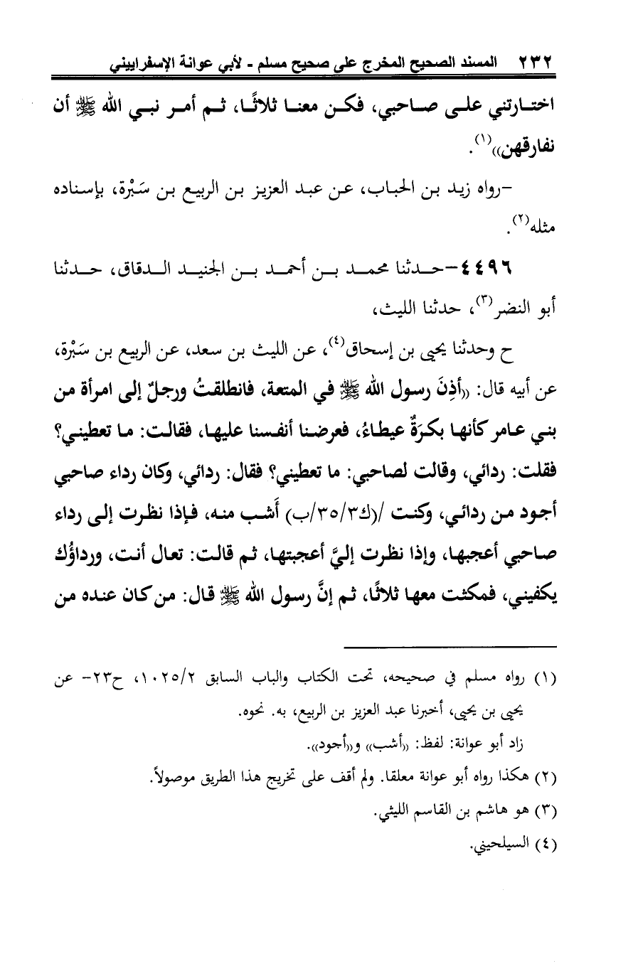 (¬3) رواه مسلم في صحيحه, في النكاح، باب نكاح المتعة وبيان أنه أبيح ثم نسخ -2/ 1023، ح 19 - عن قتيبة بن سعيد، عن الليث، به.