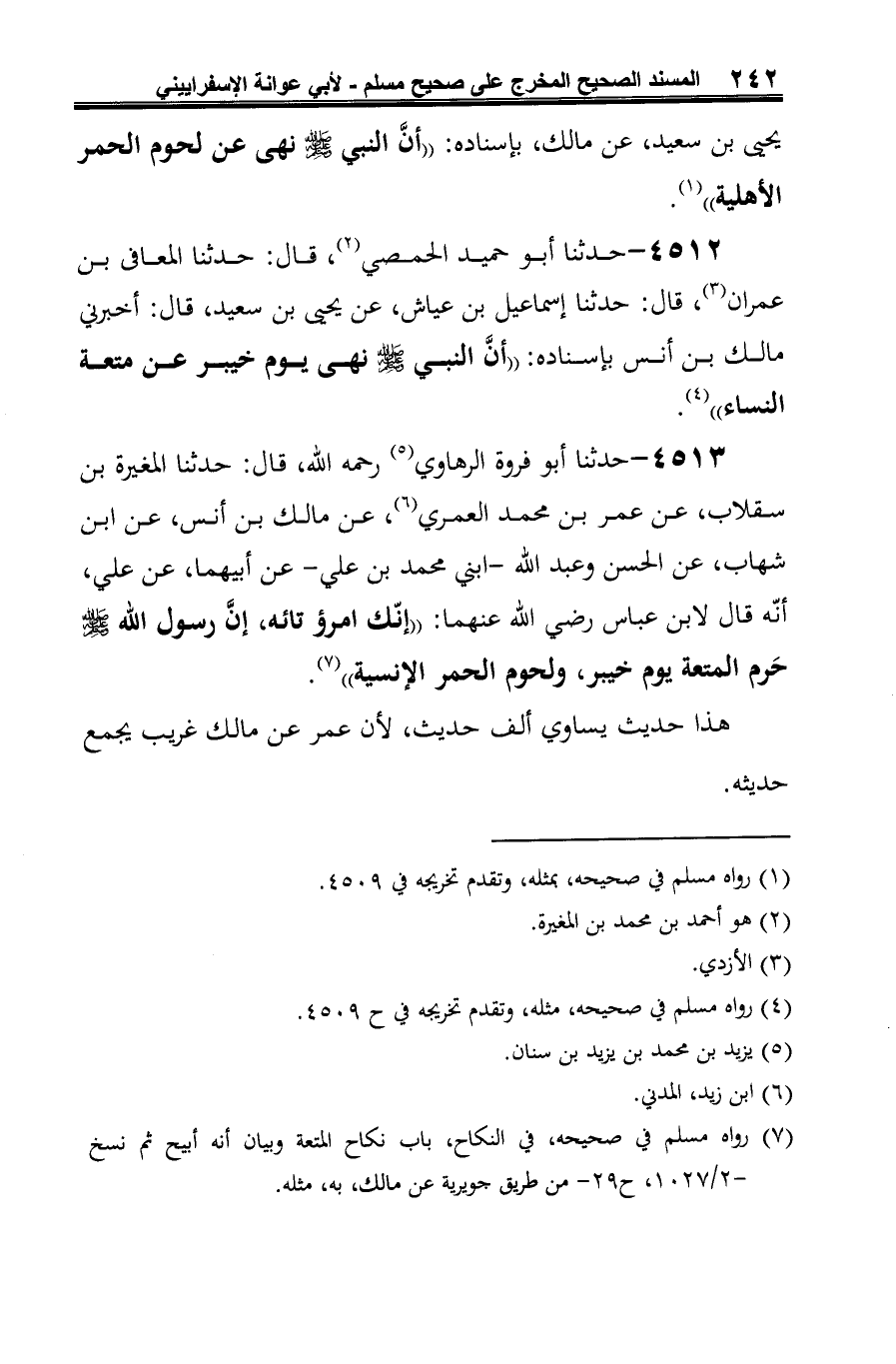 4512 - حدثنا أبو حميد الحمصي (¬1)، قال: حدثنا المعافى بن عمران (¬2)، قال: حدثنا إسماعيل بن عياش، عن يحيى بن سعيد، قال: أخبرني مالك بن أنس بإسناده: "أنَّ النبي -صلى الله عليه وسلم- نهى يوم خيبر عن متعة النساء" (¬3).
