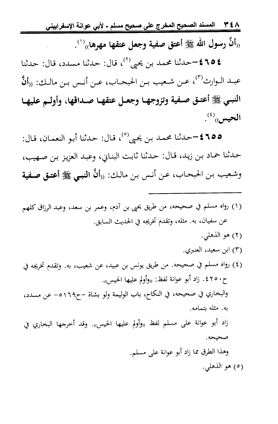 (¬3) رواه مسلم في صحيحه. من طريق يونس بن عبيد، عن شعيب، به. وتقدم تخريجه في ح 4250. زاد أبو عوانة لفظ: "وأولم عليها الحيس".