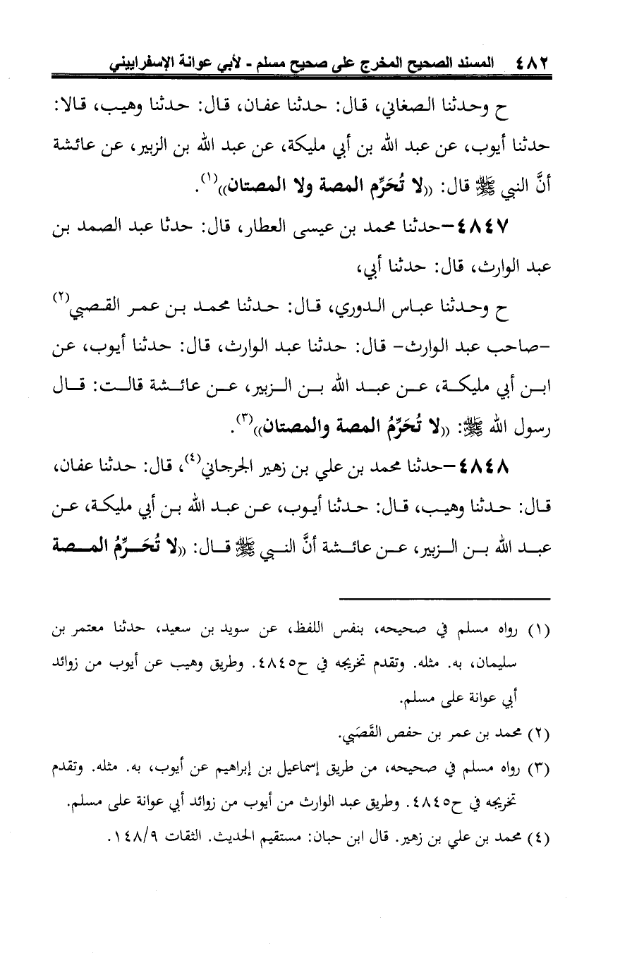 (¬2) رواه مسلم في صحيحه، من طريق إسماعيل بن إبراهيم عن أيوب، به. مثله. وتقدم تخريجه في ح 4845. وطريق عبد الوارث من أيوب من زوائد أبي عوانة على مسلم.