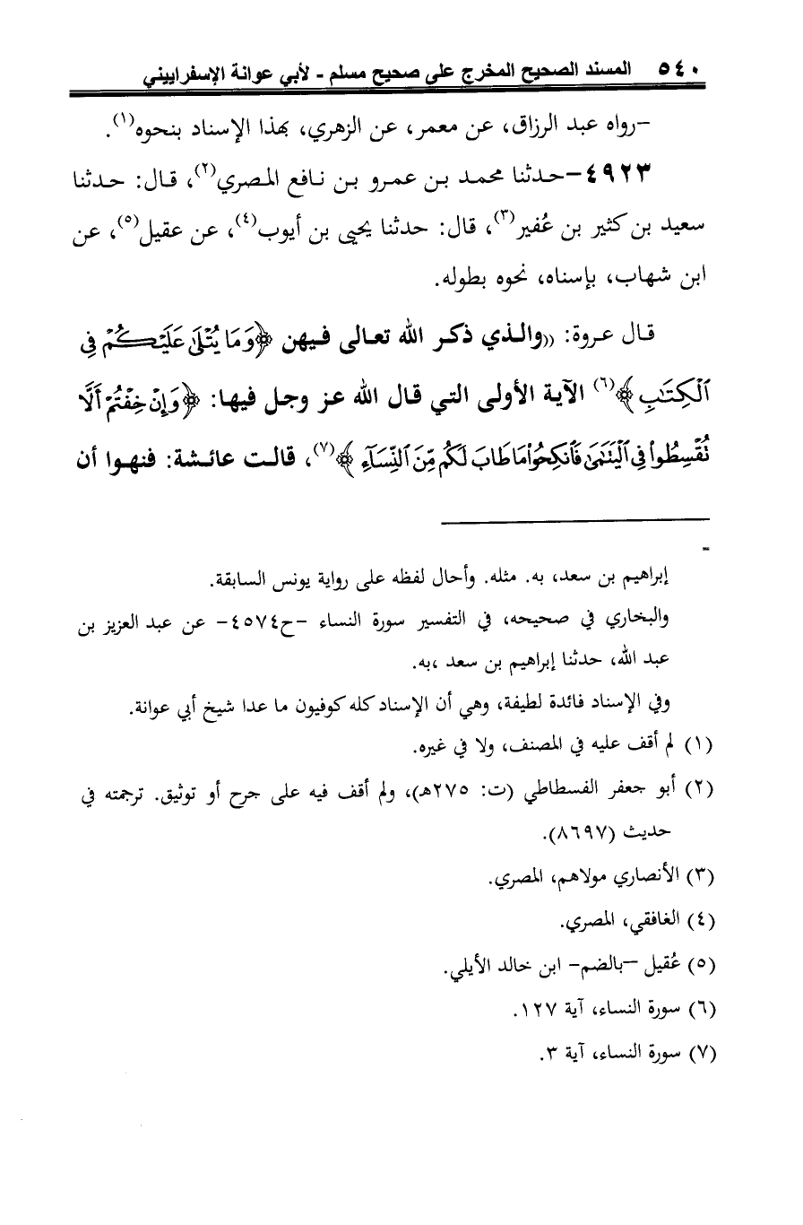 وفي إسناد أبي عوانة لطيفة إسنادين وهي رواية أربعة مصريين بعضهم عن بعض محمّد وسعيد، ويحيى، وعُقيل.