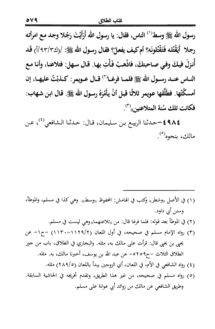 4984 - حدثنا الربيع بن سليمان، قال: حدثنا الشافعي (¬1)، عن مالك، بنحوه (¬2).