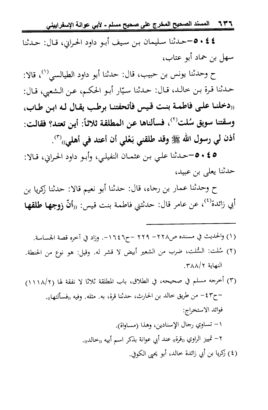 ح وحدثنا عمار بن رجاء، قال: حدثنا أبو نعيم قالا: حدثنا زكريا بن أبي زائدة (¬1)، عن عامر قال: حدثتني فاطمة بنت قيس: "أنّ زوجها طلقها