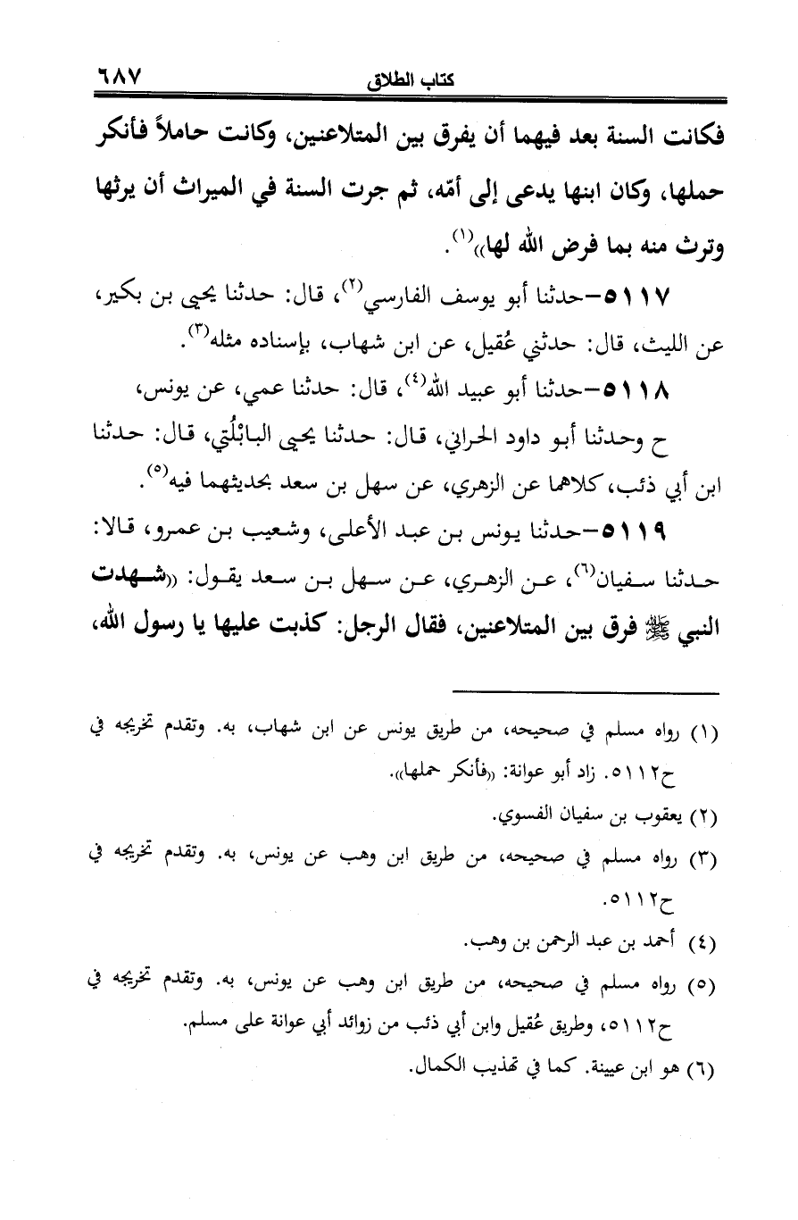 (¬2) رواه مسلم في صحيحه، في اللعان من طريق مالك عن الزهري، به. بأطول مما هنا. وتقدم تخريجه في ح 5114.