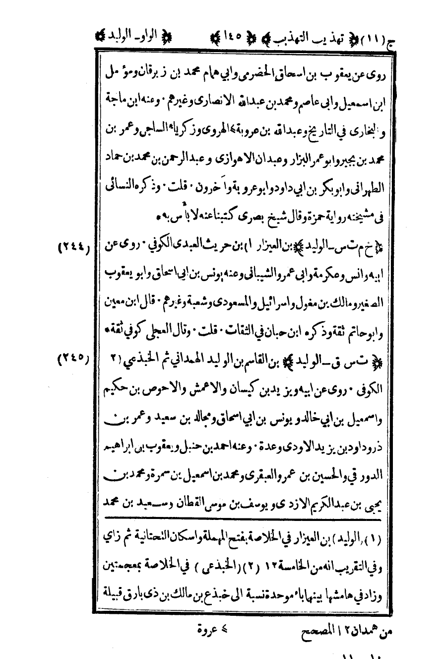 2 "الوليد" بن العيزار في الخلاصةبفتح المهملة وإسكان التحتانية ثم زاي وفي التقريب أنه من الخامسة 12.