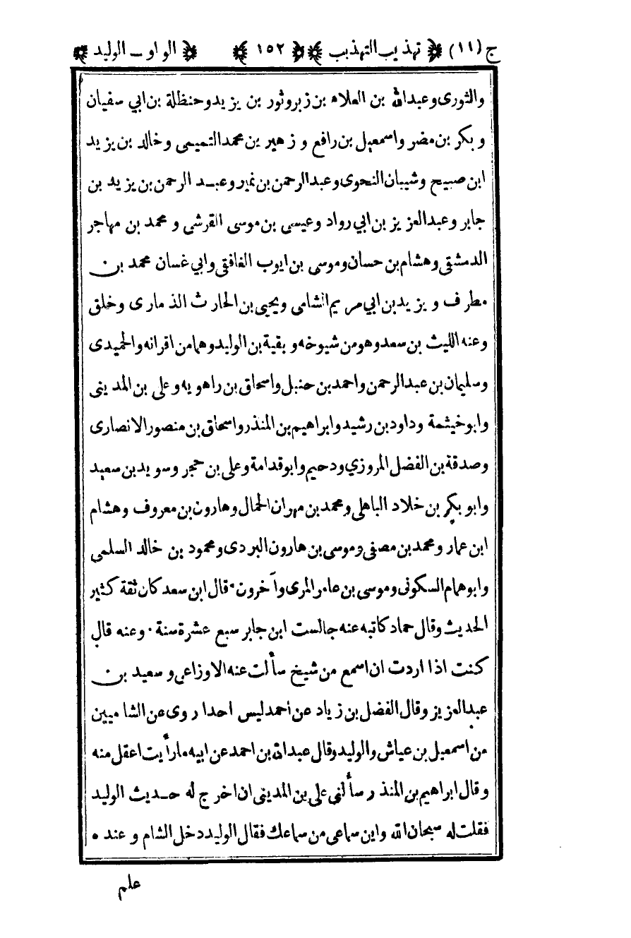 والثوري وعبد الله بن العلاء بن زبر وثور بن يزيد وحنظلة بن أبي سفيان وبكر بن مضر وإسماعيل بن رافع وزهير بن محمد التميمي وخالد بن يزيد بن صبيح وشيبان النحوي وعبد الرحمن بن نمير وعبد الرحمن بن يزيد بن جابر وعبد العزيز بن أبي رواد وعيسى بن موسى القرشي ومحمد بن مهاجر الدمشقي وهشام بن حسان وموسى بن أيوب الغافقي وأبي غسان محمد بن مطرف ويزيد بن أبي مريم الشامي ويحيى بن الحارث الذماري وخلق وعنه الليث بن سعد وهو من شيوخه وبقية بن الوليد وهما من أقرانه والحميدي وسليمان بن عبد الرحمن وأحمد بن حنبل وإسحاق بن راهويه وعلي بن المديني وأبو خيثمة وداود بن رشيد وإبراهيم بن المنذر وإسحاق بن منصور الأنصاري وصدقة بن الفضل المروزي ودحيم وأبو قدامة وعلي بن حجر وسويد بن سعيد وأبو بكر بن خلاد الباهلي ومحمد بن مهران الحمال وهارون بن معروف وهشام بن عمار ومحمد بن مصفى وموسى بن هارون البردي ومحمود بن خالد السلمي وأبو همام السكوني وموسى بن عامر المري وآخرون قال بن سعد كان ثقة كثير الحديث وقال حماد كاتبه عنه جالست بن جابر سبع عشرة سنة وعنه قال كنت إذا أردت أن أسمع من شيخ سألت عنه الأوزاعي وسعيد بن عبد العزيز وقال الفضل بن زياد عن أحمد: ليس أحدا روى عن الشاميين من إسماعيل بن عياش والوليد وقال عبد الله بن أحمد عن أبيه ما رأيت أعقل منه وقال إبراهيم بن المنذر سألني علي بن المديني أن أخرج له حديث الوليد فقلت له: سبحان الله وأين سماعي من سماعك فقال الوليد دخل الشام وعنده