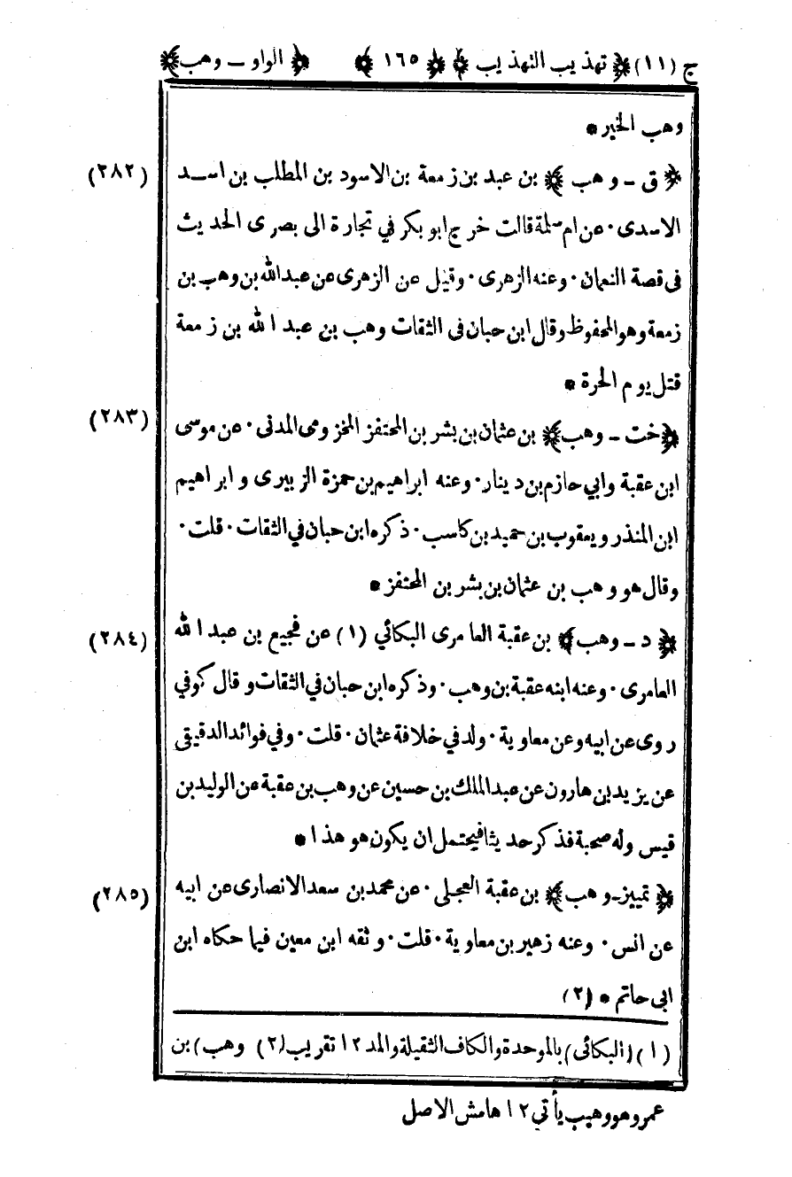 2 "وهب" بن عمرو هو وهيب يأتي 12 هامش الأصل.