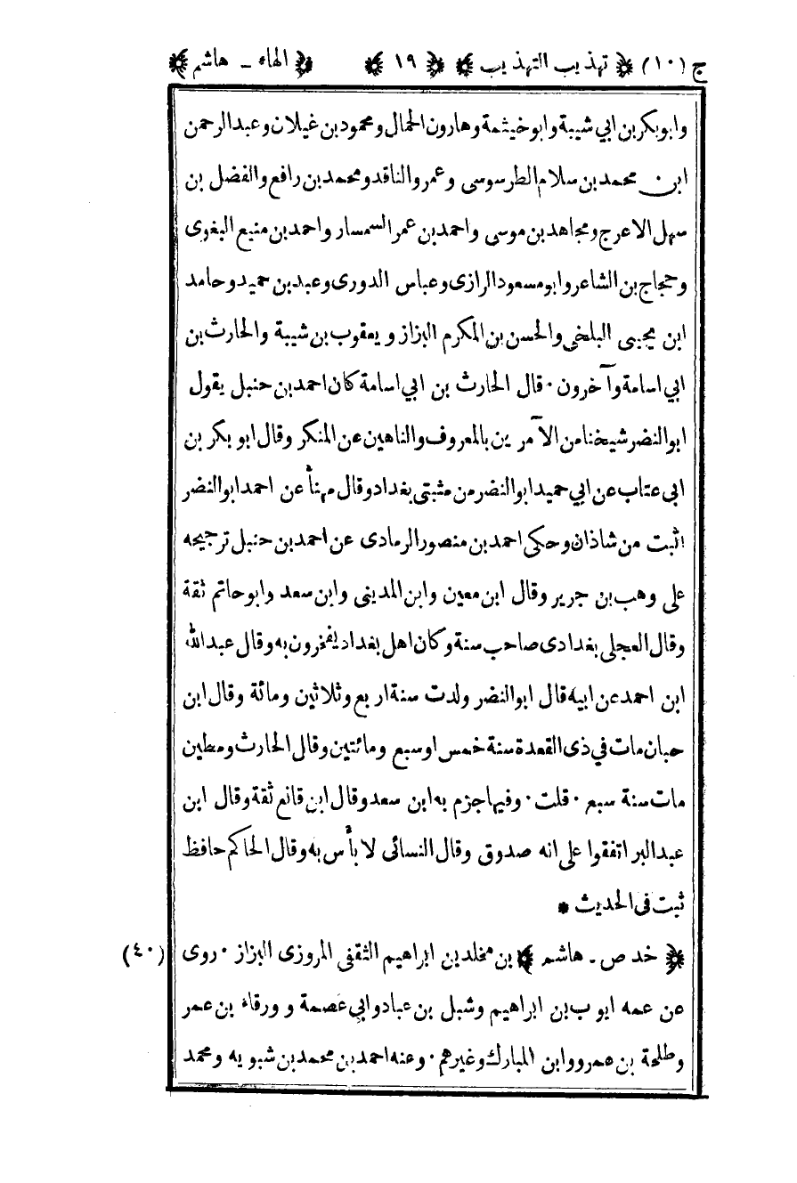 40 – "خد ص – هاشم" ابن مخلد بن إبراهيم الثقفي المروزي البزاز روى عن عمه أيوب بن إبراهيم وشبل بن عباد وأبي عصمة وورقاء بن عمر وطلحة بن عمرو وابن المبارك وغيرهم وعنه أحمد بن محمد بن شبويه ومحمد