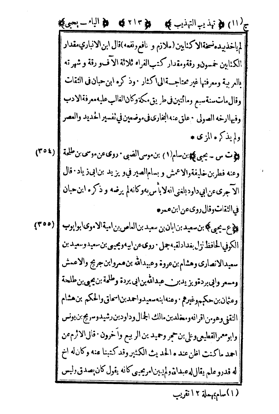 355 – "ت س يحيى" بن سام1 بن موسى الضبي روى عن موسى بن طلحة وعنه فطر بن خليفة والأعمش وبسام الصيرفي ويزيد بن أبي زياد قال الآجري عن أبي داود بلغني أنه لا بأس به وكأنه لم يرضه وذكره بن حبان في الثقات وقال روى عن بن عمر.