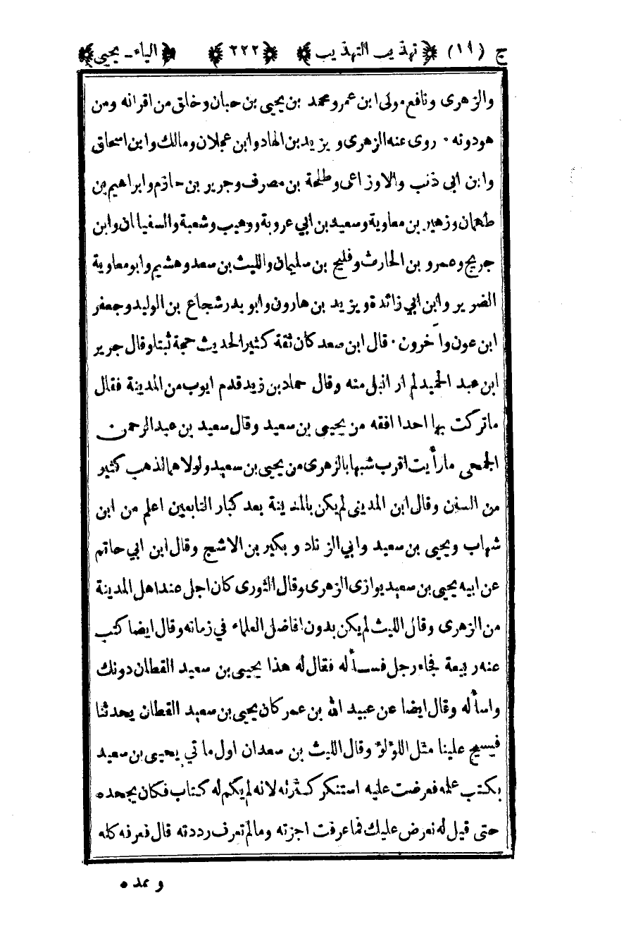 والزهري ونافع مولى بن عمر ومحمد بن يحيى بن حبان وخلق من أقرانه ومن هو دونه روى عنه الزهري ويزيد بن الهاد وابن عجلان ومالك وابن إسحاق وابن أبي ذنب والأوزاعي وطلحة بن مصرف وجرير بن حازم وإبراهيم بن طهمان وزهير بن معاوية وسعيد بن أبي عروبة ووهيب وشعبة والسفيانان وابن جريج وعمرو بن الحارث وفليح بن سليمان والليث بن سعد وهشيم وأبو معاوية الضرير وابن أبي زائدة ويزيد بن هارون وأبو بدر شجاع بن الوليد وجعفر بن عون وآخرون قال بن سعد كان ثقة كثير الحديث حجة ثبتا وقال جرير بن عبد الحميد لم أر أنبل منه وقال حماد بن زيد قدم أيوب من المدينة فقال ما تركت بها أحدا أفقه من يحيى بن سعيد وقال سعيد بن عبد الرحمن الجمحي ما رأيت أقرب شبها بالزهري من يحيى بن سعيد ولولاهما لذهب كثير من السنن وقال بن المديني لم يكن بالمدينة بعد كبار التابعين أعلم من بن شهاب ويحيى بن سعيد وأبي الزناد وبكير بن الأشج وقال بن أبي حاتم عن أبيه يحيى بن سعيد يوازي الزهري وقال الثوري كان أجل عند أهل المدينة من الزهري وقال الليث لم يكن بدون أفاضل العلماء في زمانه وقال أيضا كتب عنه ربيعة فجاء رجل فسأله فقال له هذا يحيى بن سعيد القطان دونك واسأله وقال أيضا عن عبيد الله بن عمر كان يحيى بن سعيد القطان يحدثنا فيسيح علينا مثل اللؤلؤ وقال الليث بن سعد أن أول ما أتى يحيى بن سعيد بكتب علمه فعرضت عليه استنكر كثرته لأنه لم يكن له كتاب فكان يجحده حتى قيل له نعرض عليك فما اجزته وما لم تعرف رددته قال فعرفه كله