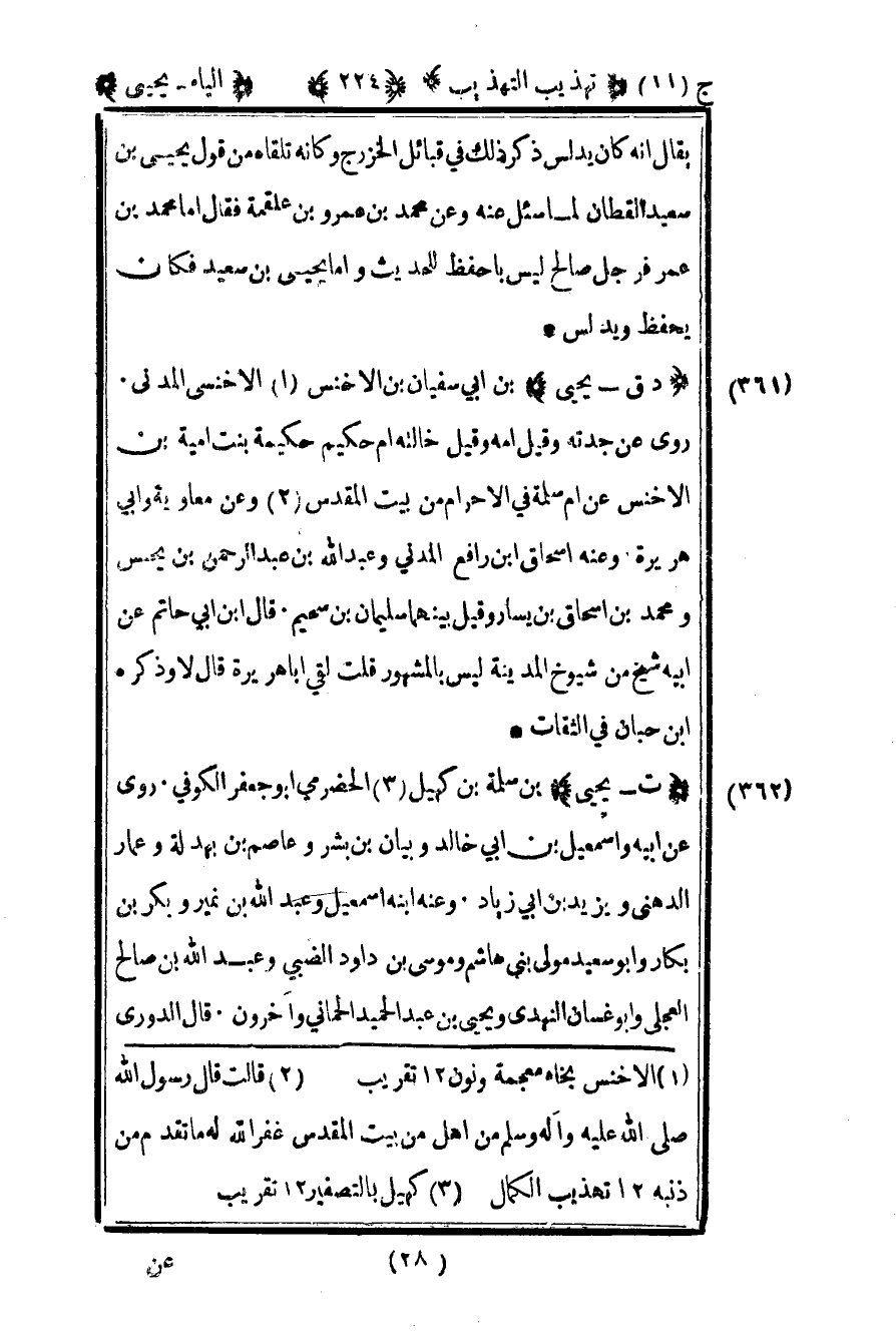362 – "د ق – يحيى" بن أبي سفيان بن الأخنس1 الأخنسي المدني روى عن جدته وقيل أمه وقيل خالته أم حكيم حكيمة بنت أمية بن الأخنس عن أم سلمة في الإحرام من بيت المقدس2 وعن معاوية وأبي هريرة وعنه إسحاق بن رافع المدني وعبد الله بن عبد الرحمن بن يحنس ومحمد بن إسحاق بن يسار وقيل بينهما سليمان بن سحيم قال بن أبي حاتم عن أبيه شيخ من شيوخ المدينة ليس بالمشهور قلت: لقي أبا هريرة قال لا وذكره بن حبان في الثقات.