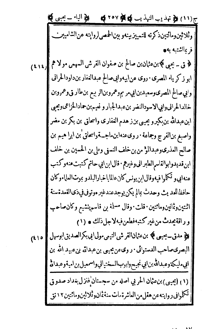 416-"مد ق – يحيى" بن عثمان القرشي التيمي مولى أبي بكر الصديق أبو سهل البصري صاحب الدستوائي روى عن يحيى بن عبد الله بن عبيد الله بن أبي مليكة وعبد الله بن أبي نجيح وأيوب السختياني وإسماعيل بن أمية وعبد الله