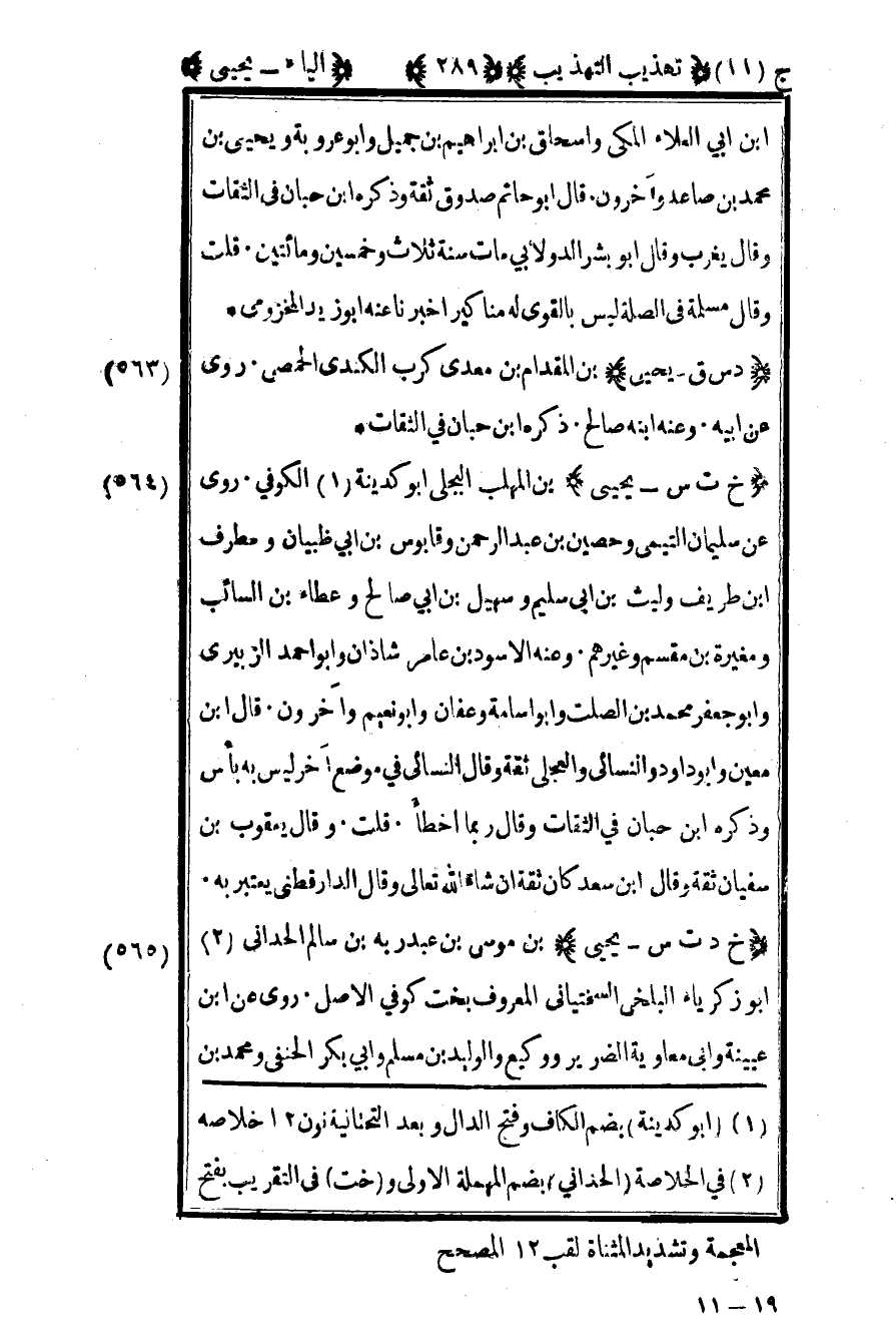 2 في الخلاصة "الحداني" بضم المهملة الأولى و"خت" في التقريب بفتح المعجمة وتشديد المثناة لقب 12 المصحح.