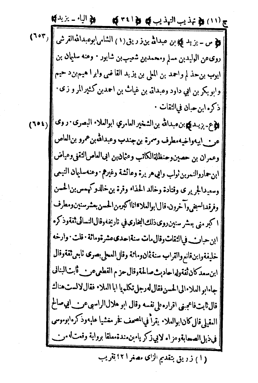 653- – "س – يزيد" بن عبد الله بن زريق1 الشامي أبو عبد الله القرشي روى عن الوليد بن مسلم ومحمد بن شعيب بن شابور وعنه سليمان بن أيوب بن حذلم وأحمد بن المعلى بن يزيد القاضي وإبراهيم بن دحيم وأبو بكر بن أبي داود وعبد الله بن غياث بن أحمد بن كثير المروزي ذكره بن حبان في الثقات.