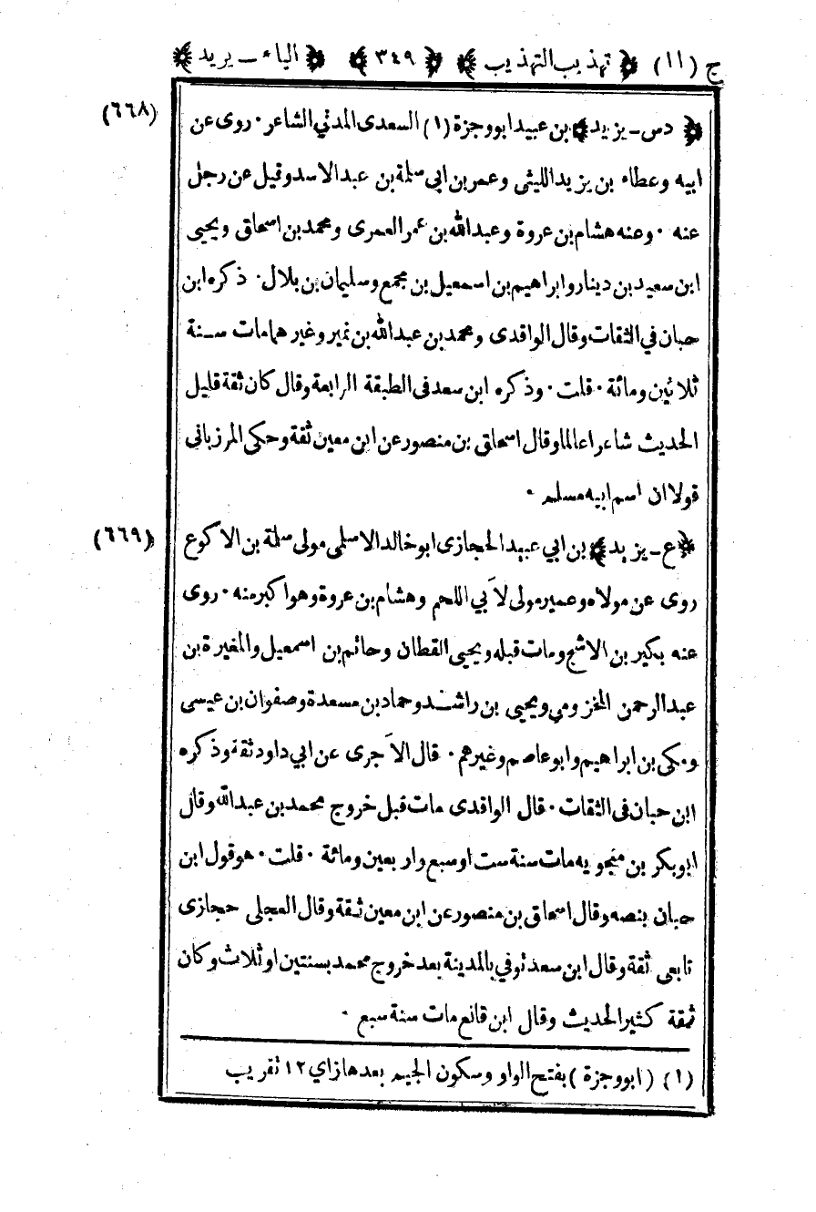 1 "أبو وجزة" بفتح الواو وسكون الجيم بعدها زاي 12 تقريب.