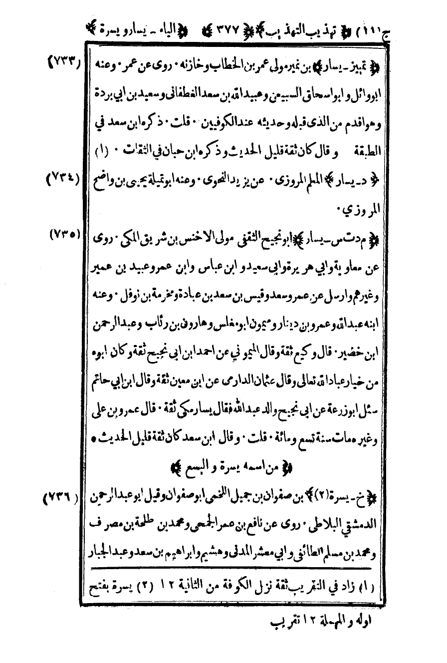 734-"د – يسار" المعلم المروزي عن يزيد النحوي وعنه أبو تميلة يحيى بن واضح المروزي.
