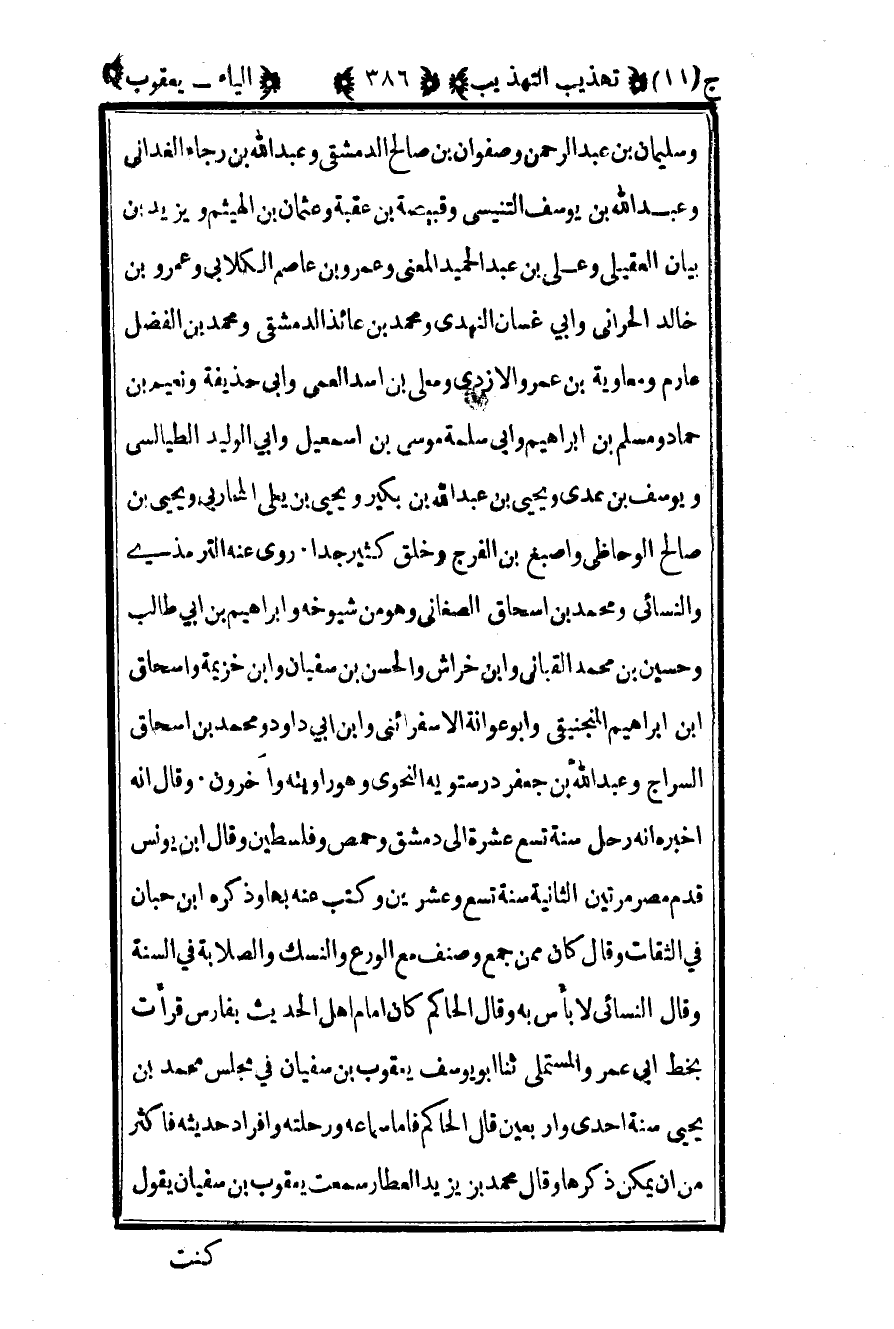 وسليمان بن عبد الرحمن وصفوان بن صالح الدمشقي وعبد الله بن رجاء الغداني وعبد الله بن يوسف التنيسي وقبيصة بن عقبة وعثمان بن الهيثم ويزيد بن بيان العقيلي وعلي بن عبد الحميد المعني وعمرو بن عاصم الكلابي وعمرو بن خالد الحراني وأبي غسان النهدي ومحمد بن عائذ الدمشقي ومحمد بن الفضل عارم ومعاوية بن عمرو الأزدي ومعلى بن أسد العمي وأبي حذيفة ونعيم بن حماد ومسلم بن إبراهيم وأبي سلمة موسى بن إسماعيل وأبي الوليد الطيالسي ويوسف بن عدي ويحيى بن عبد الله بن بكير ويحيى بن يعلى المحاربي ويحيى بن صالح الوحاظي وأصبغ بن الفرج وخلق كثير جدا روى عنه الترمذي والنسائي ومحمد بن إسحاق الصغاني وهو من شيوخه وإبراهيم بن أبي طالب وحسين بن محمد القباني وابن خراش والحسن بن سفيان وابن خزيمة وإسحاق بن إبراهيم المنجنيقي وأبو عوانة الإسفرائيني وابن أبي داود ومحمد بن إسحاق السراج وعبد الله بن جعفر درستويه النحوي وهو روايته وآخرون وقال أنه أخبره أنه رحل سنة تسع عشرة إلى دمشق وحمص وفلسطين وقال بن يونس قدم مصر مرتين الثانية سنة تسع وعشرين وكتب عنه بها وذكره بن حبان في الثقات وقال كان ممن جمع وصنف مع الورع والنسك والصلابة في السنة وقال النسائي: لا بأس به وقال الحاكم كان إمام أهل الحديث بفارس قرأت بخط أبي عمرو المستملي ثنا أبو يوسف يعقوب بن سفيان في مجلس محمد بن يحيى سنة إحدى وأربعين قال الحاكم فأما سماعه ورحلته وأفراد حديثه فأكثر من أن يمكن ذكرها وقال محمد بن يزيد العطار سمعت يعقوب بن سفيان يقول
