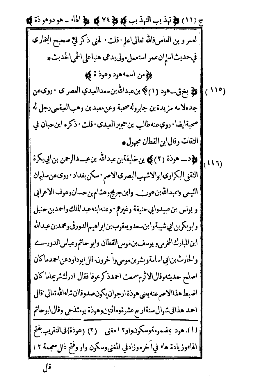 2 "هوذة" في التقريب بفتح الهاء زيادة هاء في آخره وزاد في المغني وسكون واو وفتح ذال معجمة 12.