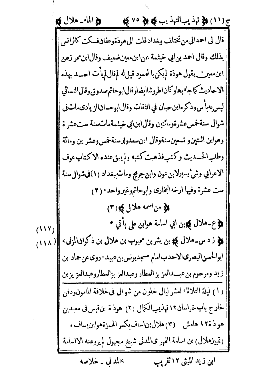 - 117 "ع – هلال" بن أبي أسامة هو بن علي يأتي.