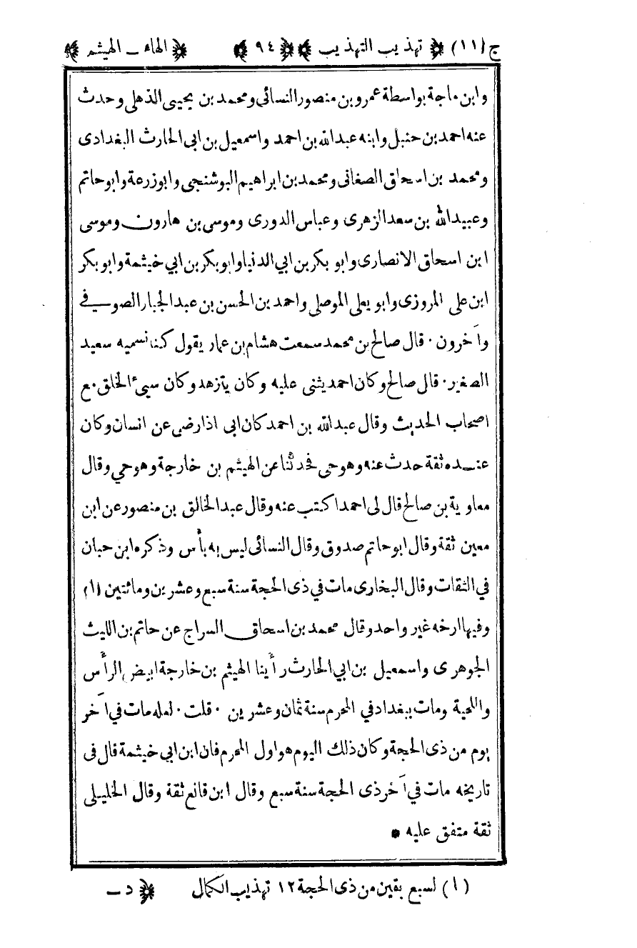 1 لسبع بقين من ذي الحجة 12 تهذيب الكمال.