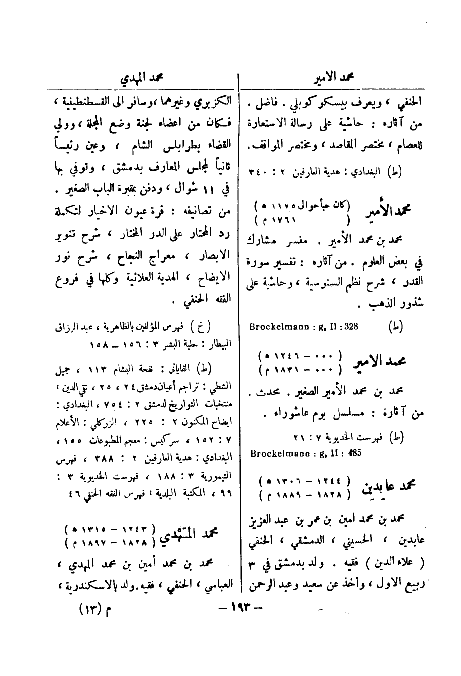 (ط) فهرست الخديوية 7: 21 485: Brockelmann: g , II محمد عابدين (1244 - 1306 هـ) (1828 - 1889 م) محمد بن محمد امين بن عمر بن عبد العزيز عابدين، الحسيني، الدمشقي، الحنفي (علاء لدين) فقيه.