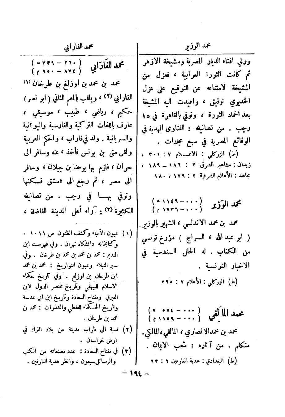 وفي تاريخ حكماء الاسلام للبيهقي وتاريخ مختصر الدول لابن العبري ومفتاح السعادة وتاريخ ابن ابي عدسة وتاريخ الحكماء للقفطي والشذرات: محمد بن محمد بن طرخان (2) نسبة إلى فاراب مدينة من بلاد الترك في