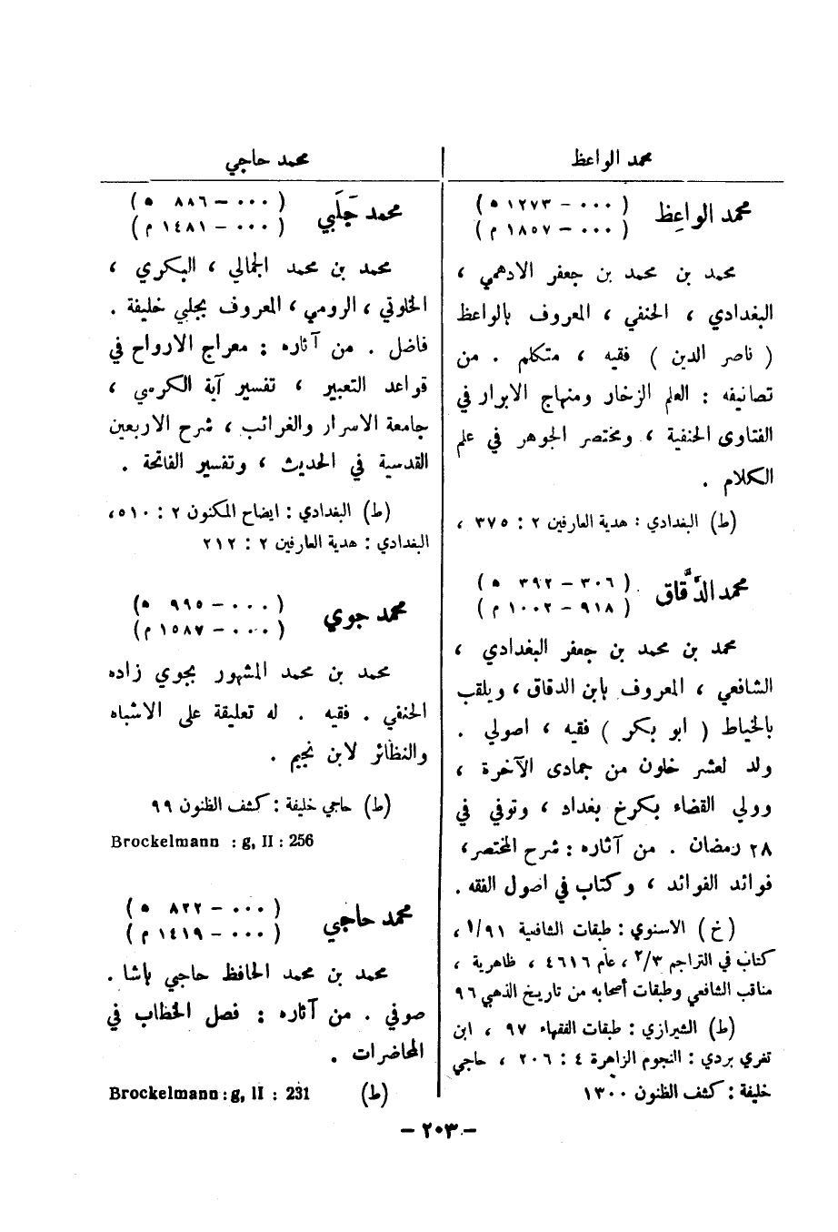 (ط) حاجي خليفة: كشف الظنون 99 256: Brockelmann: g , II محمد حاجي (000 - 822 هـ) (000 - 1419 م) محمد بن محمد الحافظ حاجي باشا.