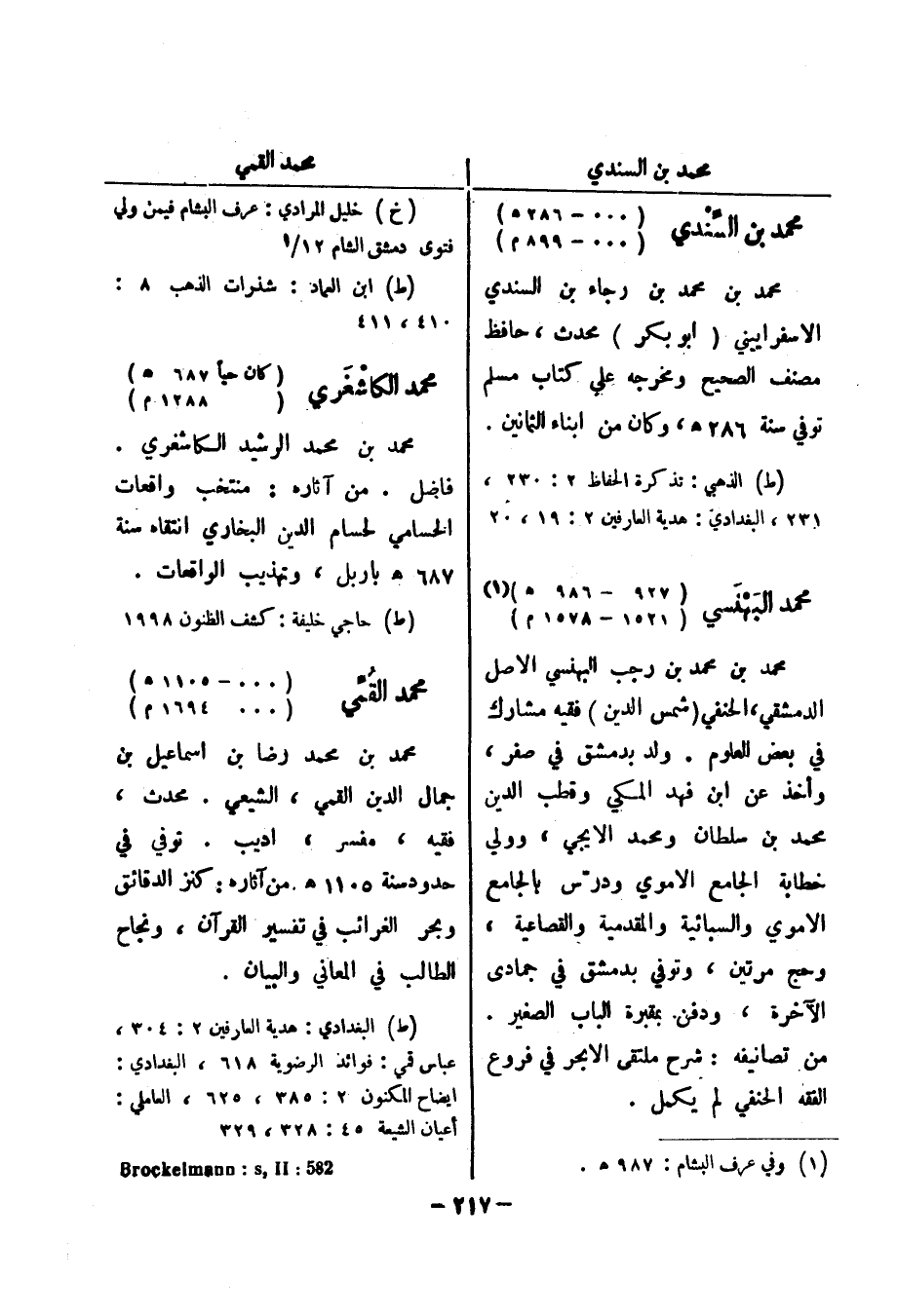 (ط) الذهبي: تذكرة الحفاظ 2: 230 231، البغدادي: هدية العارفين 2: 19، 20 محمد البهنسي (927 - 986 هـ) (1) (1521 - 1578 م) محمد بن محمد بن رجب البهنسي الاصل الدمشقي، الحنفي (شمس الدين) فقيه مشارك في بعض العلوم.