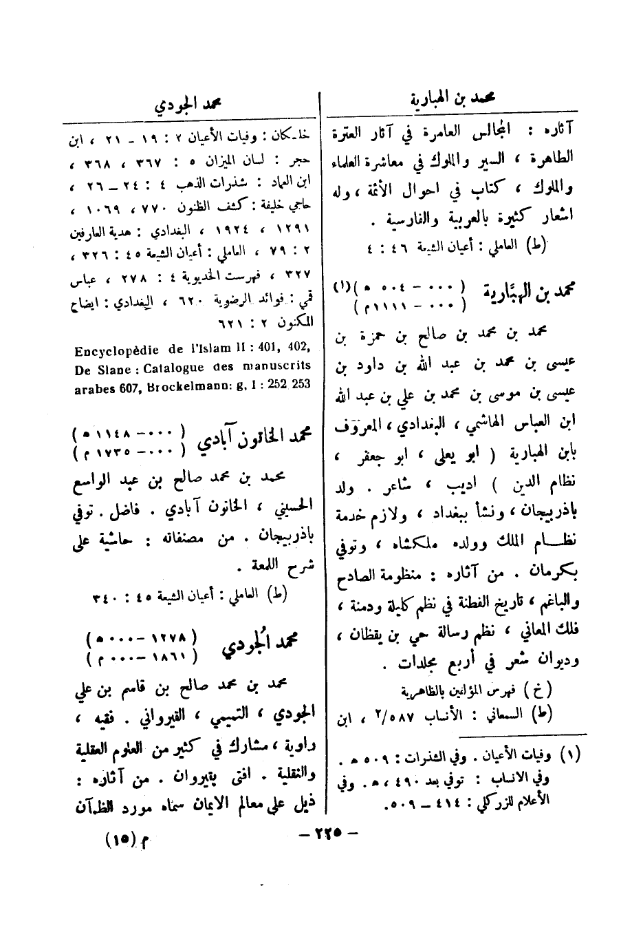 , 402 , 401: Encyclopedie de l ' Islam II 253 , 252: arabes 706 , Brockelmann ; g , I محمد الخاتون آبادي (000 - 1148 هـ) (000 - 1735 م) محمد بن محمد صالح بن عبد الواسع الحسيني، الخاتون آبادي.