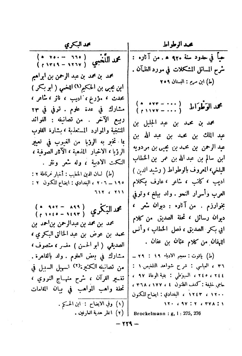 (ط) لسان الدين الخطيب: أخبار غرناطة 2: 195 - 206، البغدادي: ايضاح المكنون 2: 211، 612 محمد البكري (899 - 952 هـ) (1493 - 1545 م)