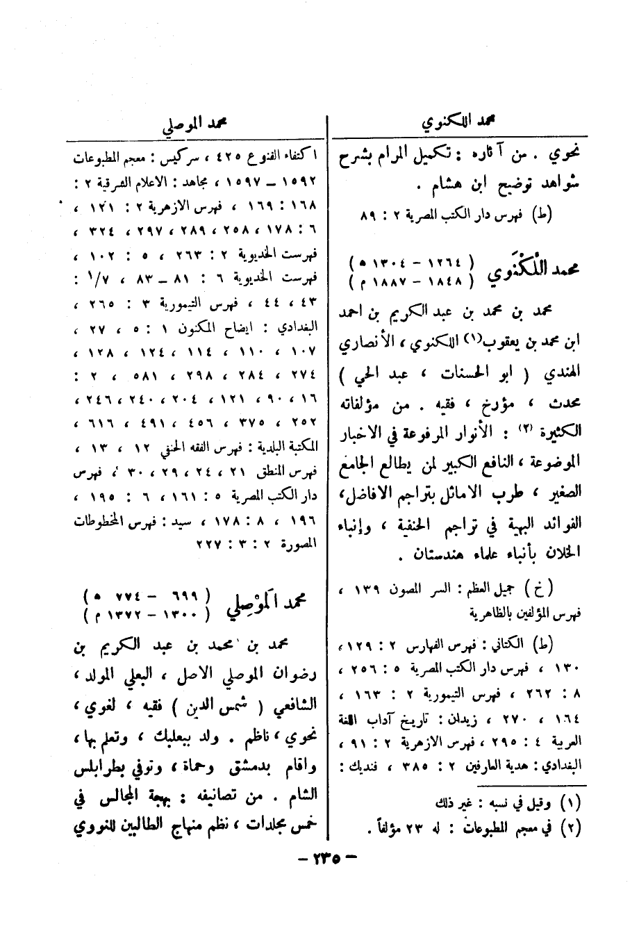 (ط) فهرس دار الكتب المصرية 2: 89 محمد اللكنوي (1264 - 1304 هـ) (1848 - 1887 م) محمد بن محمد بن عبد الكريم بن احمد ابن محمد بن يعقوب (1) اللكنوي، الانصاري الهندي (أبو الحسنات، عبد الحي) محدث، مؤرخ، فقيه.