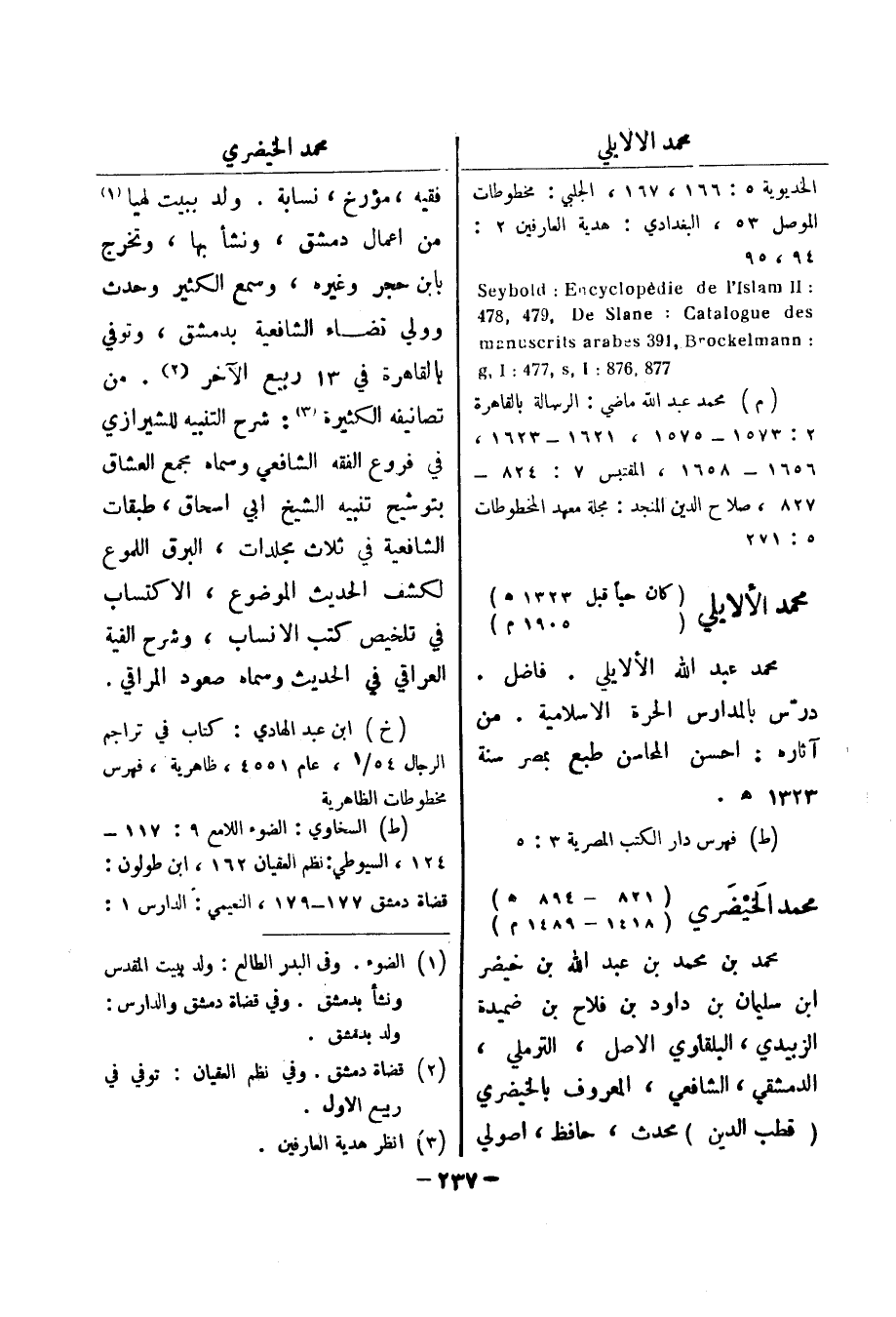 الخديوية 5: 166، 167، الجلبي: مخطوطات الموصل 53، البغدادي: هدية العارفين 2: 94، 95 874 , 974 , De Slane: Catalogue des: Seybold: Encyclopedie de l ' Islam II 877 , 876: g , ll: 774 , s , I: manuscrits arabes 193 , Brockelmann (م) محمد عبد الله ماضي: الرسالة بالقاهرة 2: 1573 - 1575، 1621 - 1623، 1656 - 1658، المقتبس 7: 824 - 827، صلاح الدين المنجد: مجلة معهد المخطوطات 5: 271، محمد الالايلي (كان حيا قبل 1323 هـ) (1905 م) محمد عبد الله الالايلي.