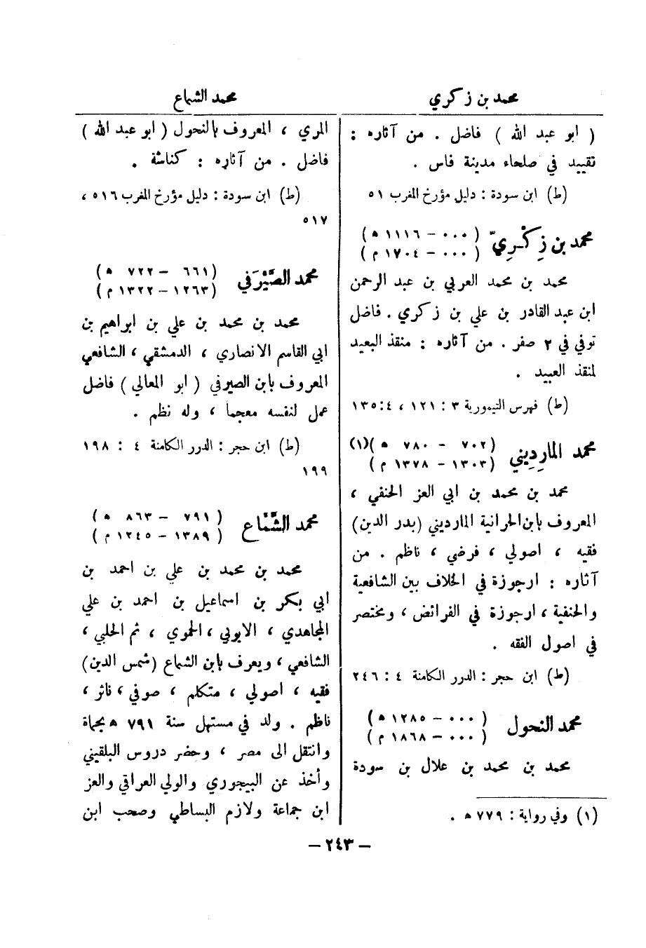 (ط) ابن حجر: الدرر الكامنة 4: 246 محمد النحول (000 - 1285 هـ) (000 - 1868 م) محمد بن محمد بن علال بن سودة