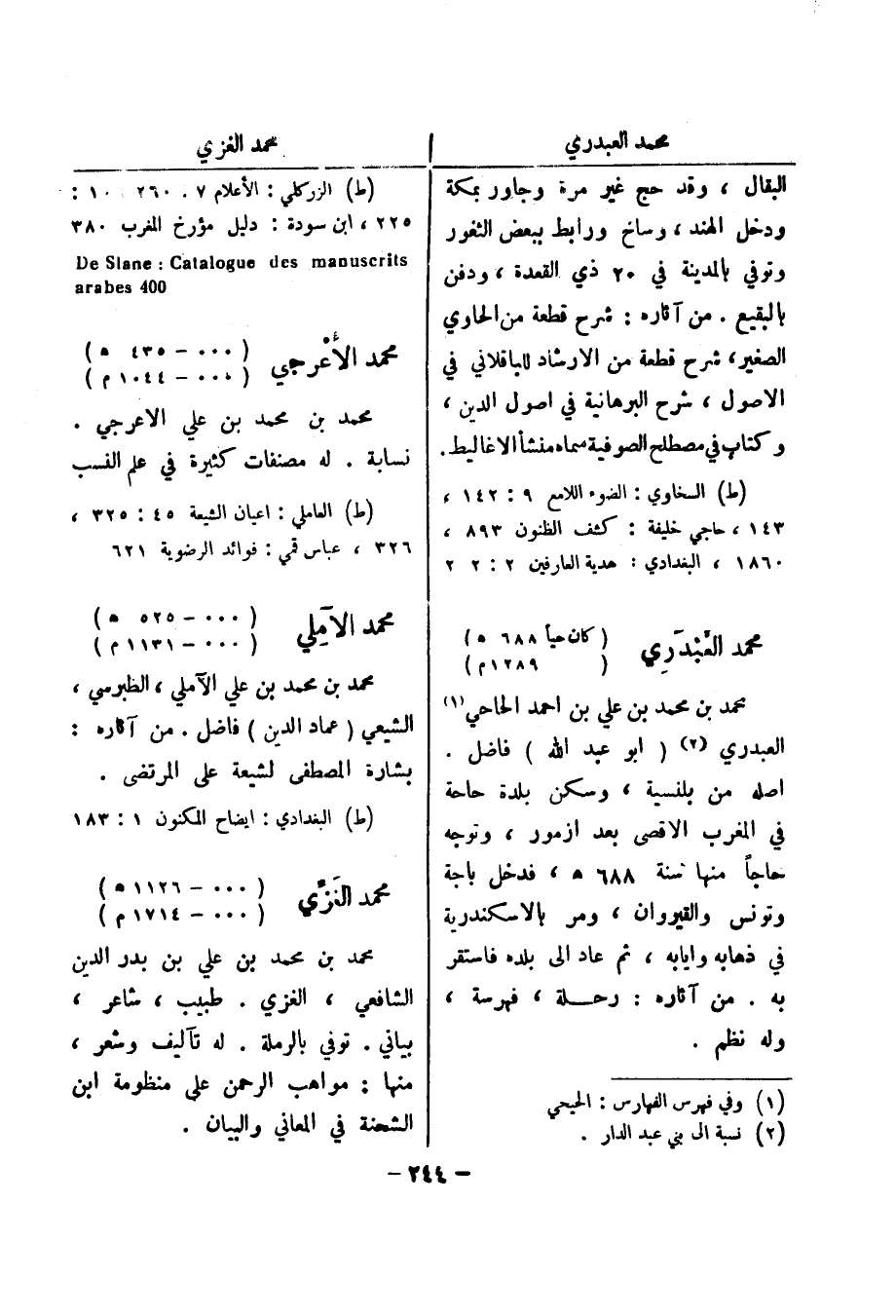 (ط) السخاوي: الضوء اللامع 9: 142، 143، حاجي خليفة: كشف الظنون 893، 1860، البغدادي: هدية العارفين 2: 2؟ 2 محمد العبدري (كان حيا 688 هـ)