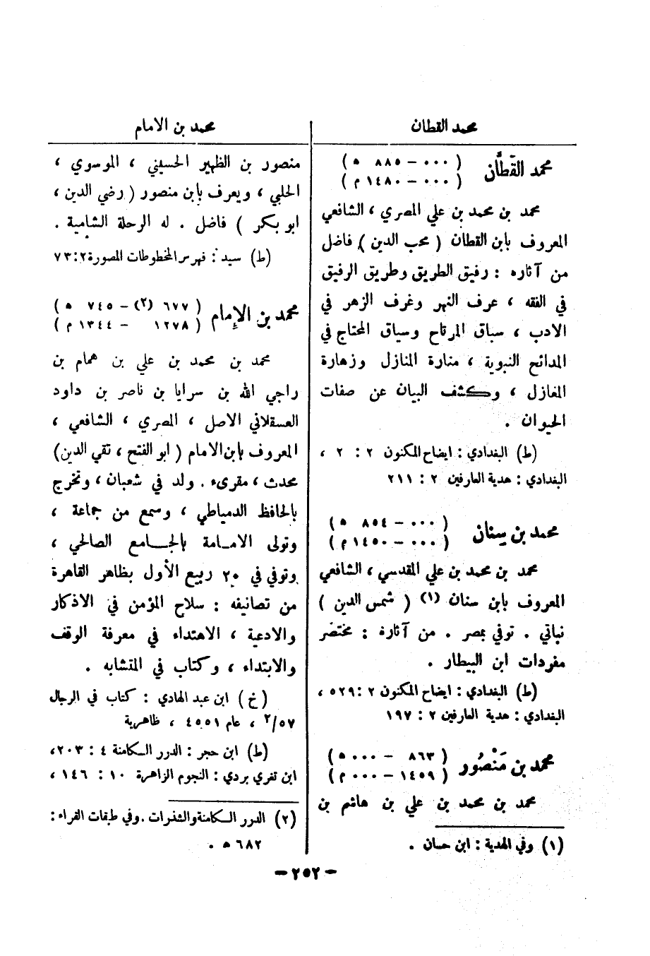 (ط) البغدادي: ايضاح المكنون 2: 2، البغدادي: هدية العارفين 2: 211 محمد بن سنان (000 - 854 هـ) (000 - 1450 م) محمد بن محمد بن علي المقدسي، الشافعي المعروف بابن سنان (1) (شمس الدين) نباتي.