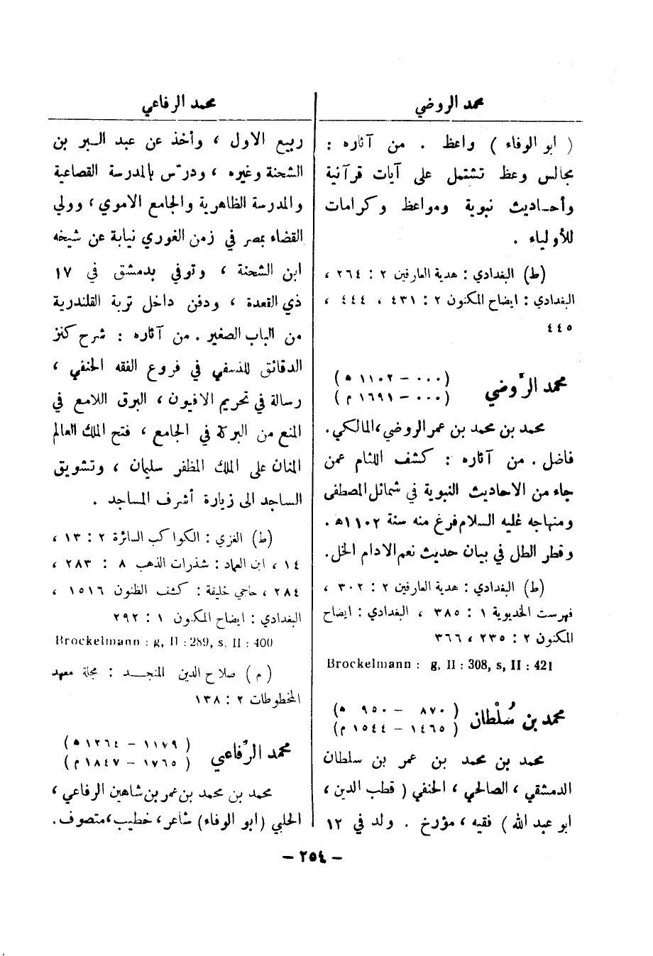 (ط) البغدادي: هدية العارفين 2: 302، فهرست الخديوية 1: 385، البغدادي: ايضاح المكنون 2: 235، 366 421: Brockelmann: g , II: 803 , s , II محمد بن سلطان (870 - 950 هـ) (1465 - 1544 م) محمد بن محمد بن عمر بن سلطان الدمشقي، الصالحي، الحنفي (قطب الدين) ،