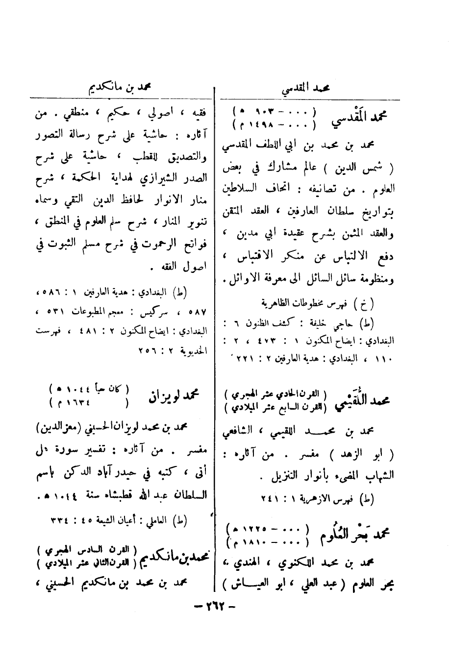 (ط) البغدادي: هدية العارفين 1: 586، 587، سر كيس: معجم المطبوعات 531، البغدادي: ايضاح المكنون 2: 481، فهرست الخديوية 2: 256 محمد لويزان (كان حيا 1044 هـ) (1634 م) محمد بن محمد لويزان الحسيني (معز الدين)