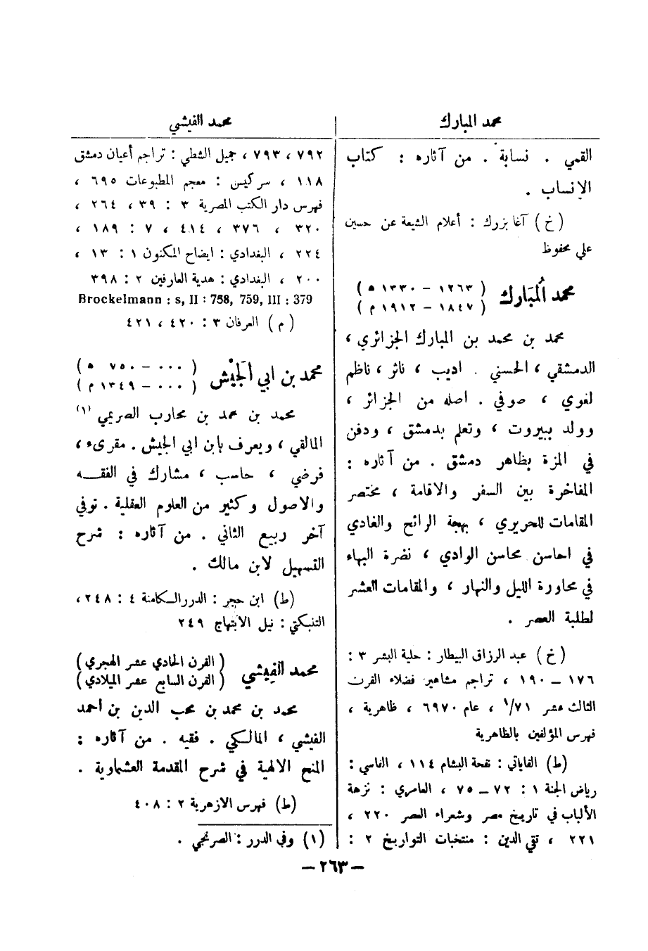 (خ) آغا بزرك: أعلام الشيعة عن حسين علي محفوظ محمد المبارك (1263 - 1330 هـ) (1847 - 1912 م) محمد بن محمد بن المبارك الجزائري، الدمشقي، الحسني اديب، ناثر، ناظم لغوي، صوفي، اصله من الجزائر، وولد ببيروت، وتعلم بدمشق، ودفن في المزة بظاهر دمشق.